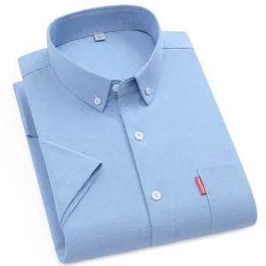 New Fashion Men’s 100% Cotton Shirts Summer Short Sleeve Loose Oxford Business Formal Plain Regular Fit Button Oversized 5XL 4XL