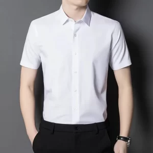 New Bamboo Fiber Stretch Men Shirt Fashion Casual Business Short-Sleeved Top Anti-Wrinkle No-Iron Solid Color Formal Shirt 6XL