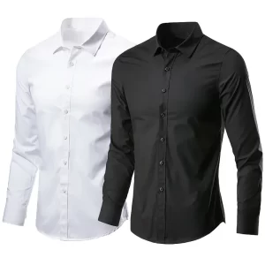 Men’s White Black High Quality Shirts Spring New Regular Fit Long Sleeve Shirt Men Formal Wedding Elastic Shirt Male