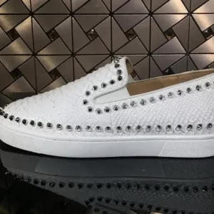 Luxury Brand Red Bottoms Male Comfortable Real Leather Loafers Men Casual Shoes Party Dress Snake Pattern Rivet Flats Sneakers