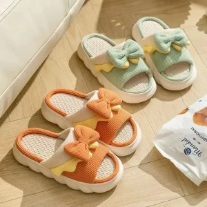Summer Women Slippers Anti-Slip Home Slippers Lightweight Shoes Women Indoor Linen Slippers Soft Shoes