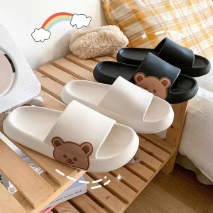 Summer Slippers Women Shoes Beach Slides Cartoon Bear Flip Flops Flat Sandals Home Bathroom Anti-Slip Slipper Man Couple Sandals