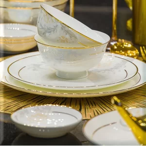46pcs set, bone china dinnerware set, snow white design, christmas dinner plate set, bowl crockery china, porselein servies