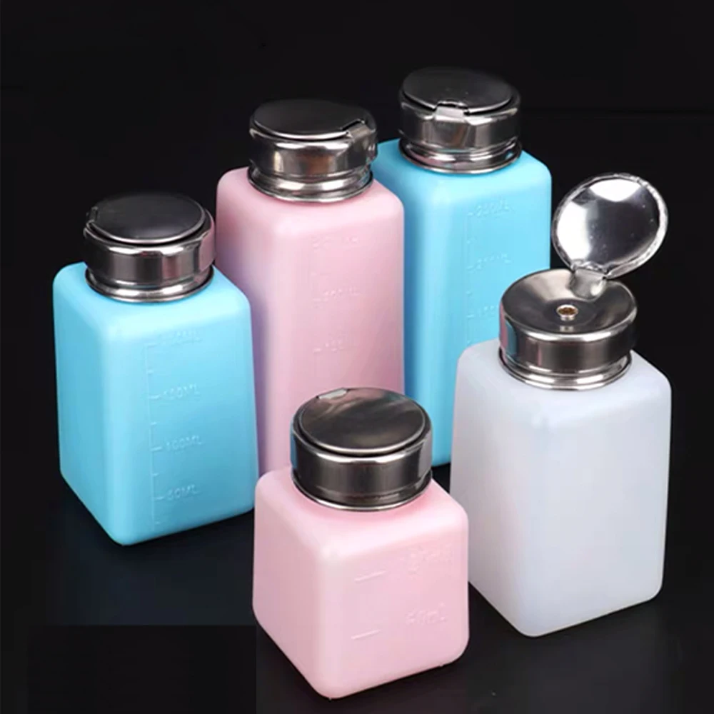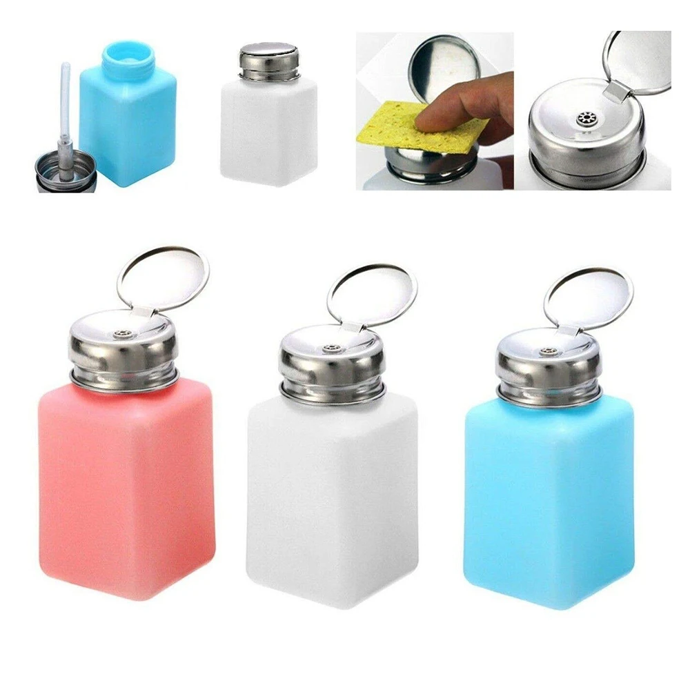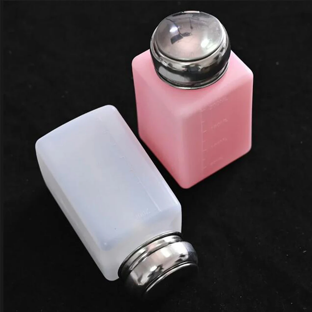 (200ml)Portable Alcohol Press Bottle Push Down Liquid Press Pumping Refillable Empty Pump Container DIY Nail Polish Remover Tool