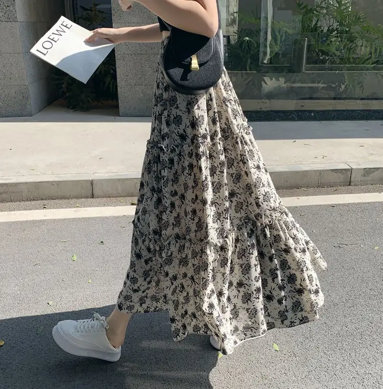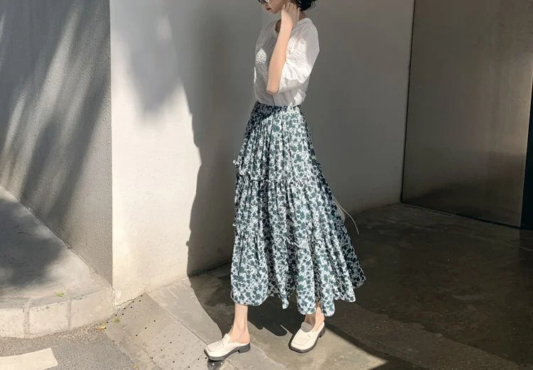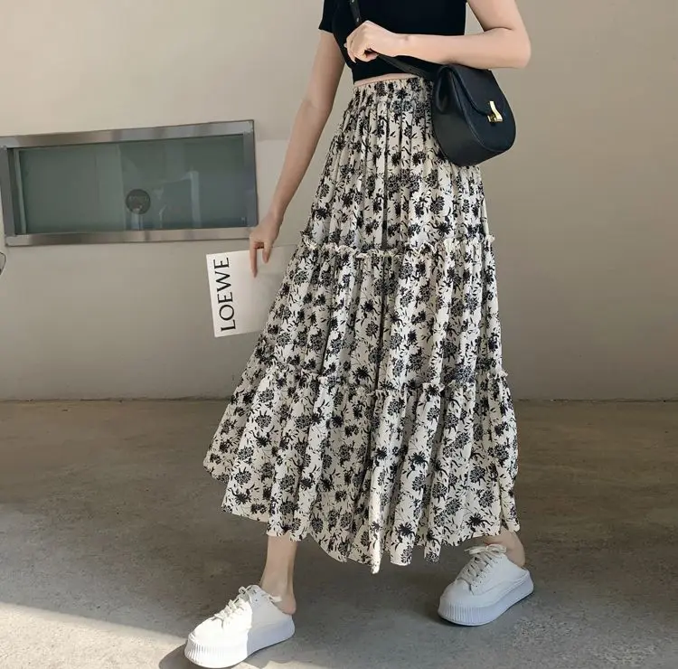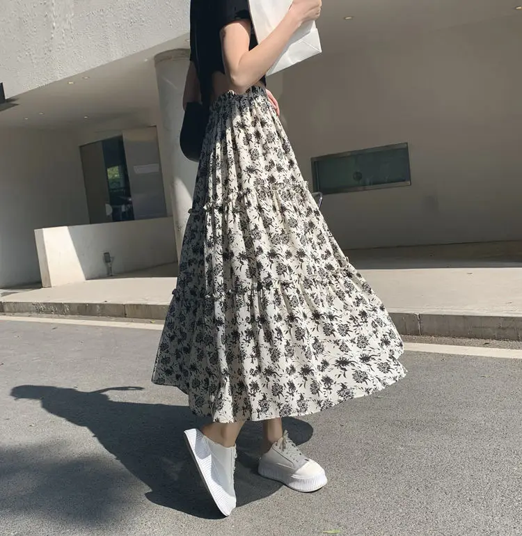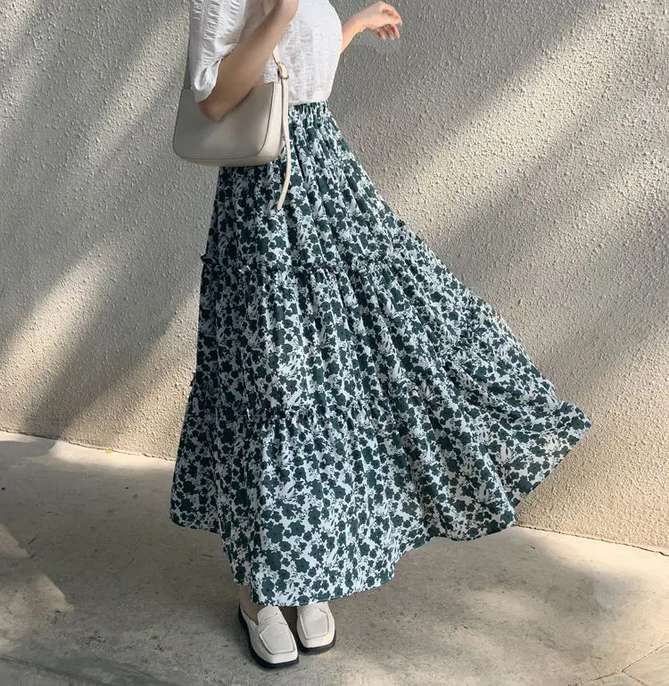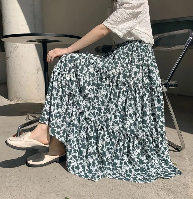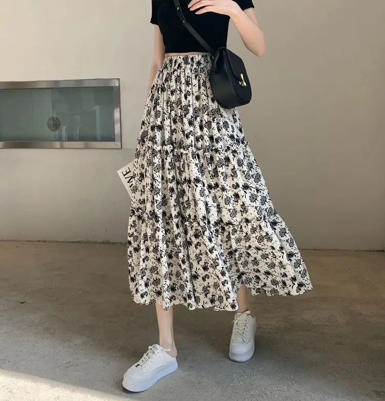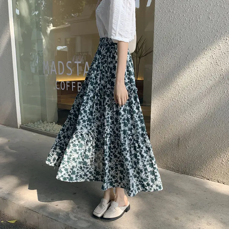 2023 New Summer Fashion Trend Fragmented Flower High Waist Covering Meat Casual Loose Fit Small Women’s A-line Half Skirt