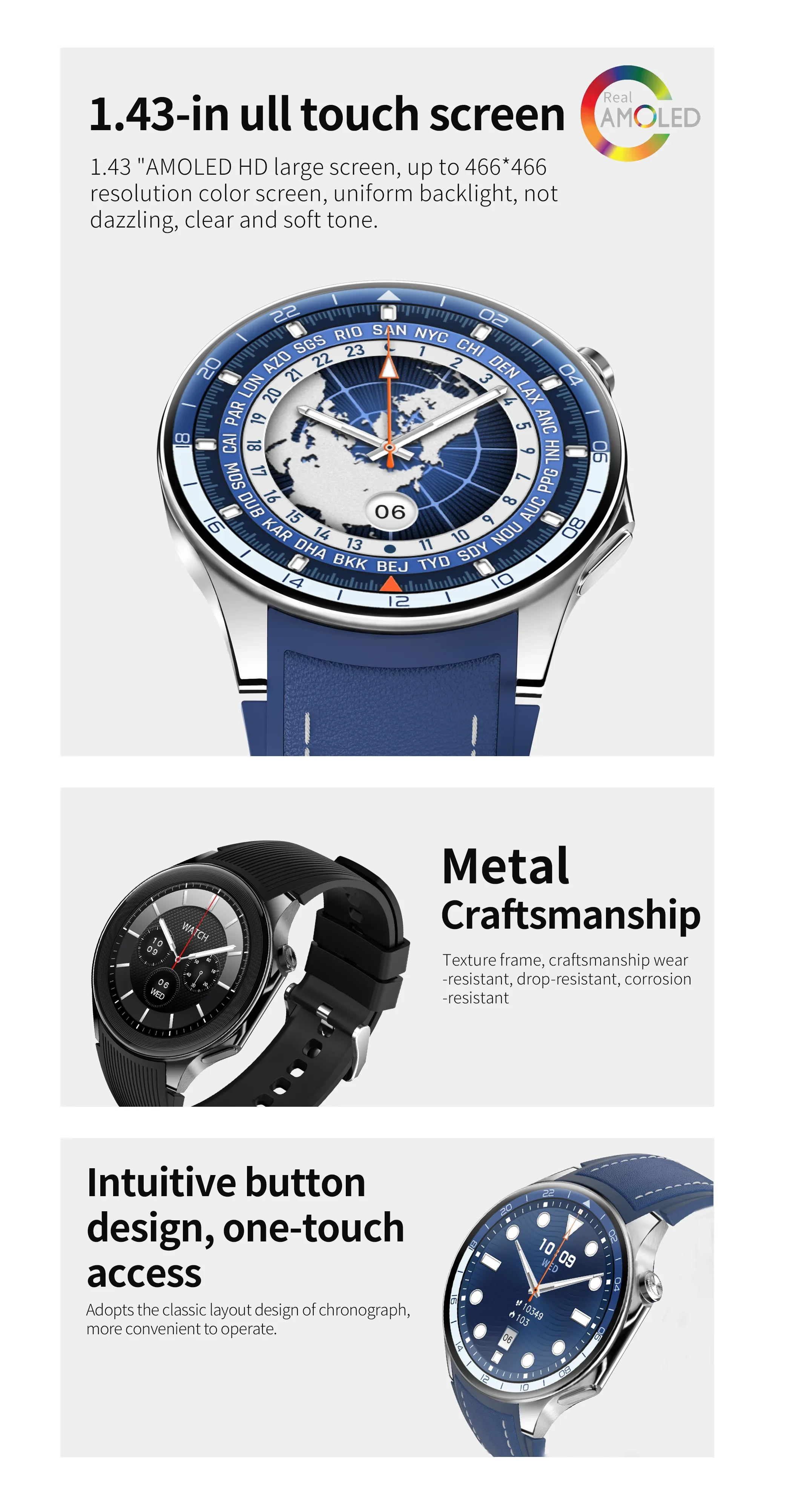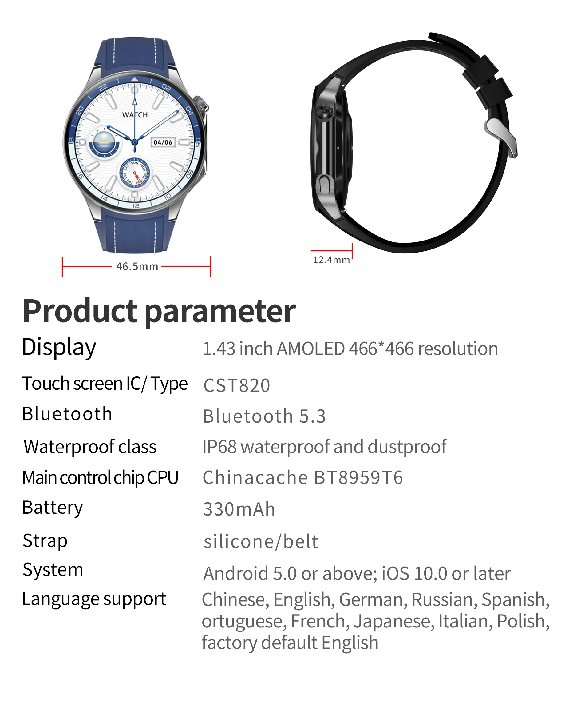 ➤1.43 inch AMOLED 466*466 HD screen