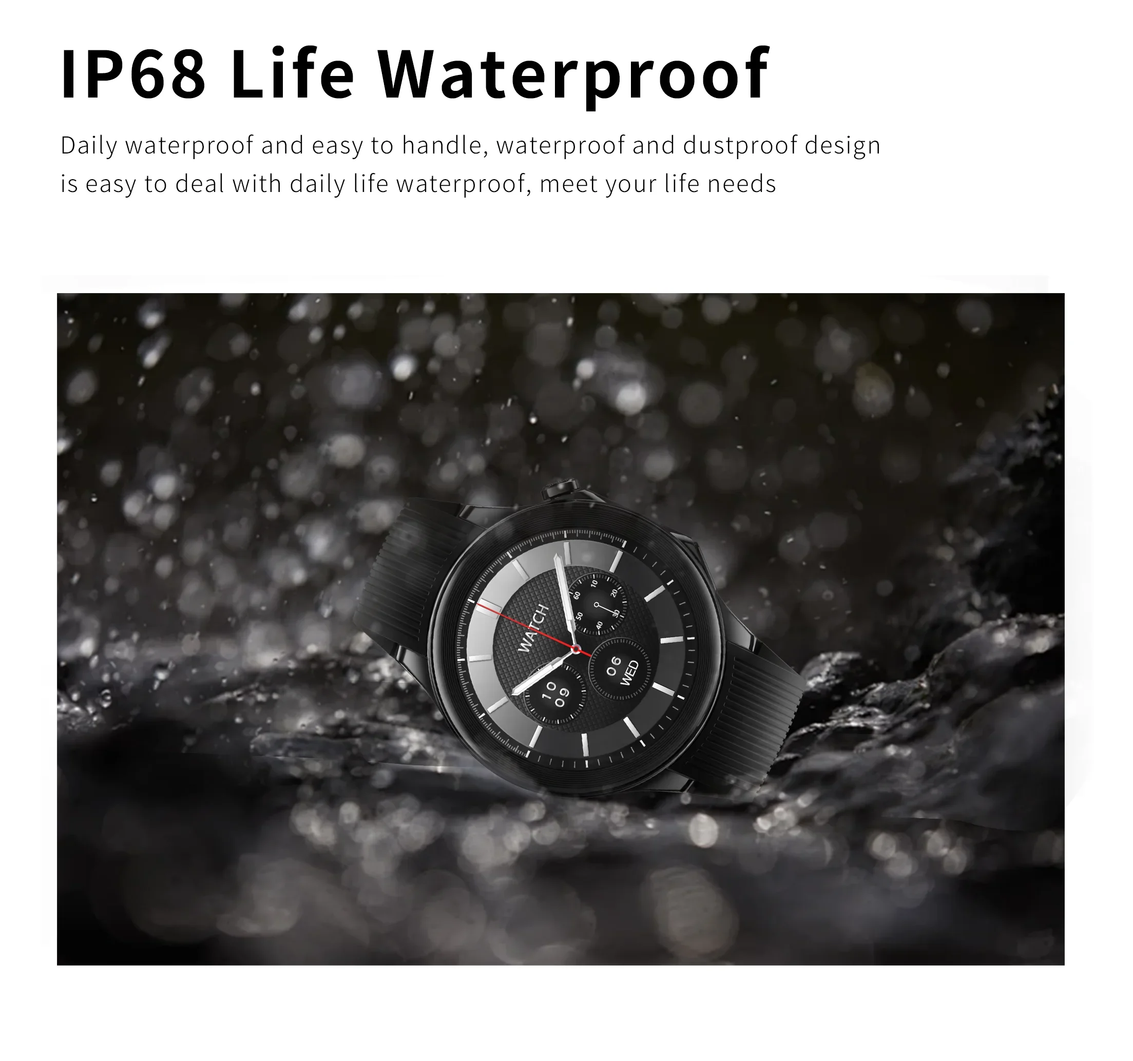 ➤ IP68 waterproof and dustproof, wash your hands, the watch can also be used in the rainy day