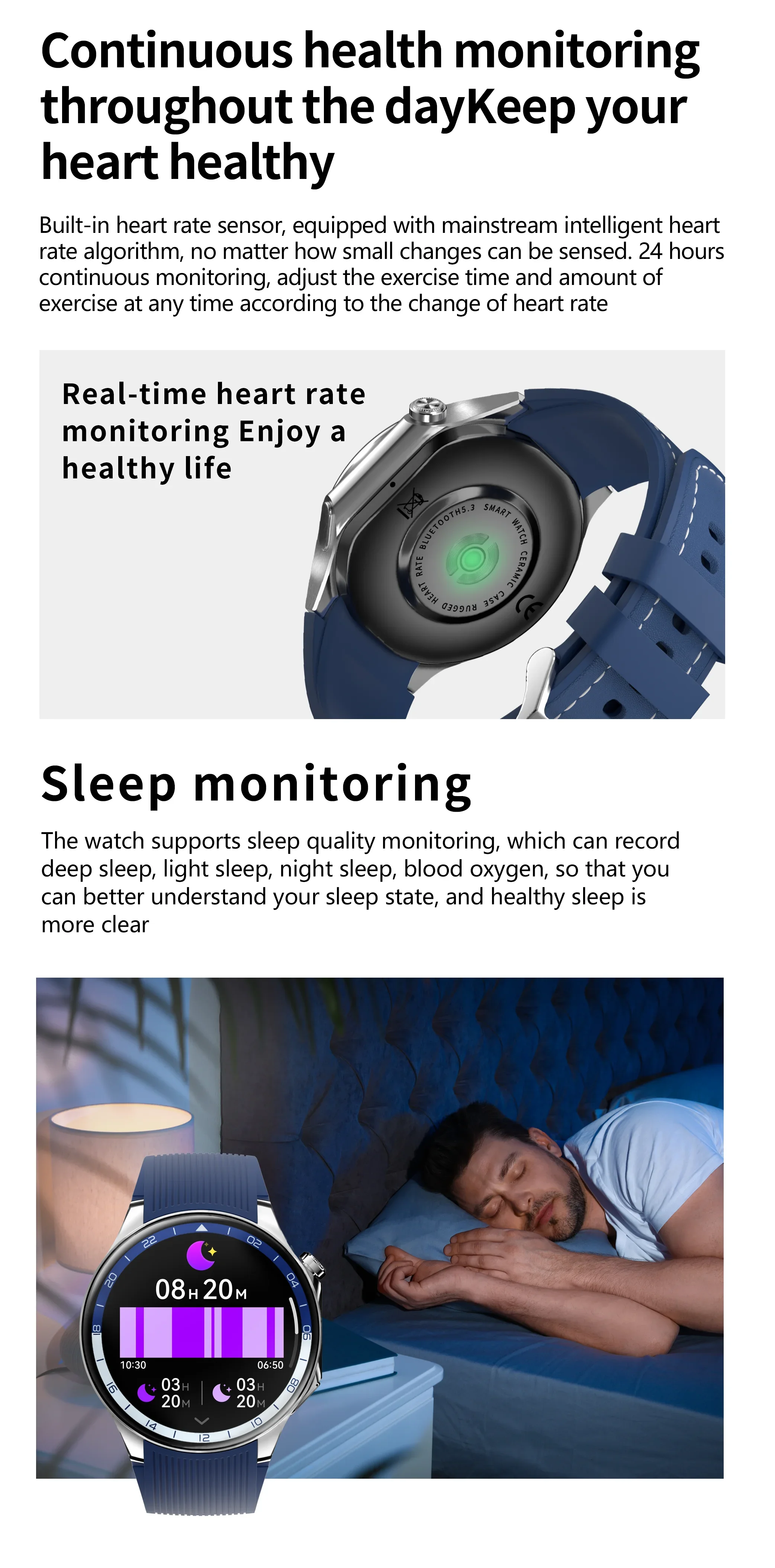 ➤Health detection (blood pressure, heart rate, blood oxygen, sedentary reminder, sleep monitoring, automatic heart rate monitoring, etc.)