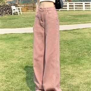 Y2k Pink High Waist Causal Wide Leg Jeans Women Straight 2024 New Spring Straight Leg Loose Fitting Slimming American Denim Pant