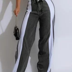 XIZOU Side Stripe Denim Baggy Pants 2024 Fashion Retro Streetwear Y2k Blue Jeans for Women Women’s High Waisted Wide Leg Jeans
