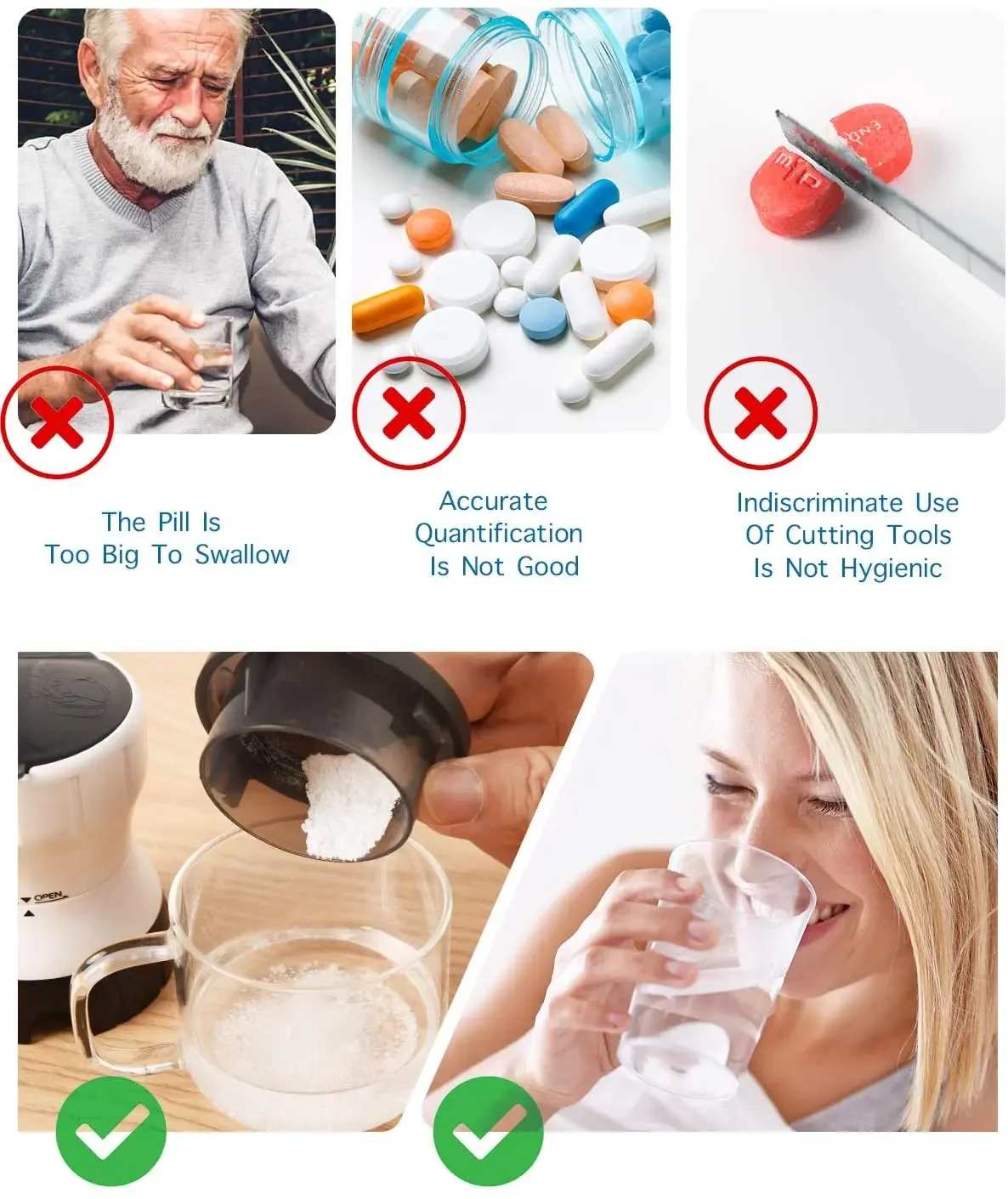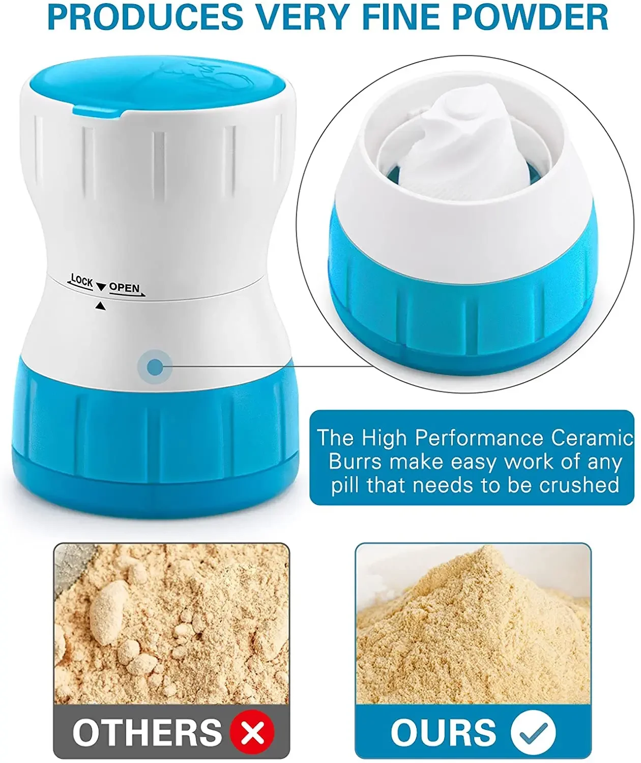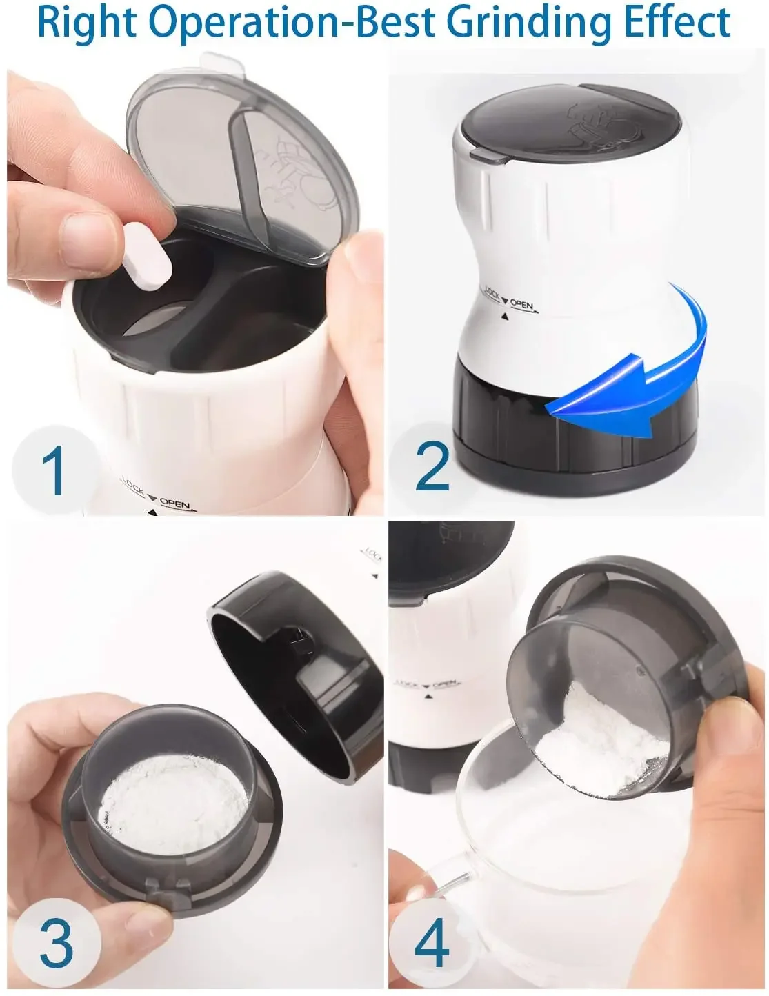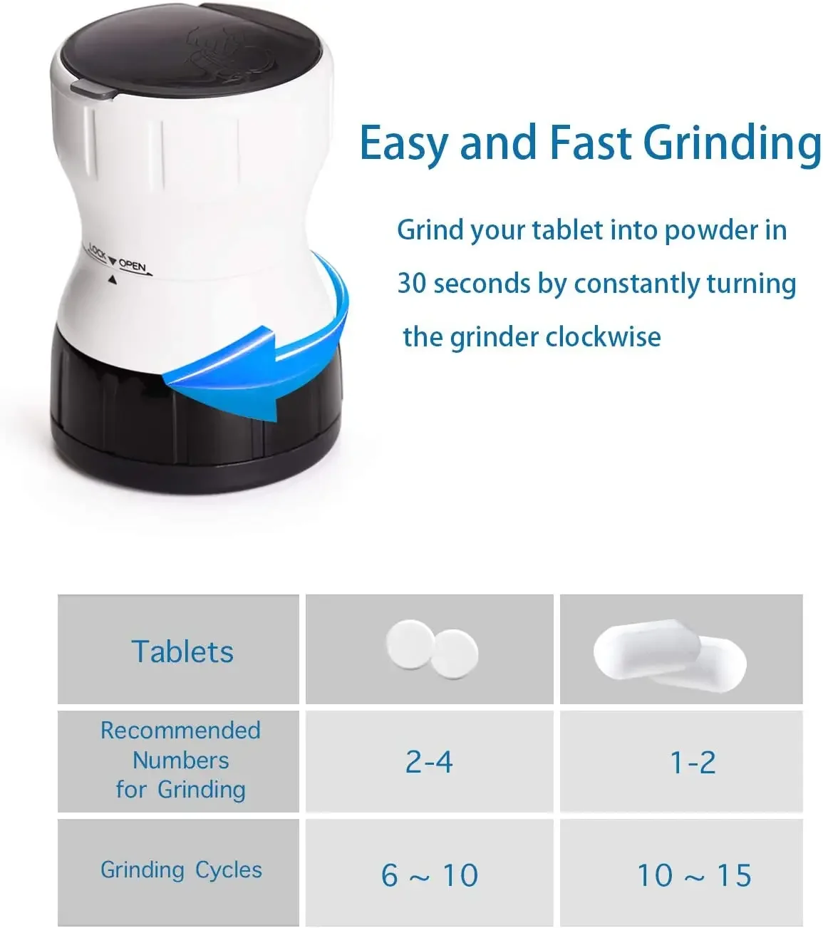 【Operating skills】 EASY and FAST GRINDING – We have adopted advanced Ceramic core grinding technology, which allows our grinder can grind your tablet into powder in 30 seconds. Fast grinding tips: grinding clockwise 3 turns, counterclockwise 2 turns, alternately grinding in turn for 30 seconds.