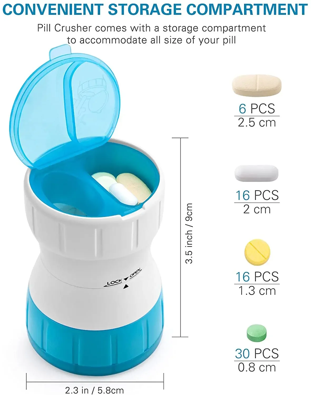 【High practicality】 It is divided into three parts. Tablet storage pill box, rotary crusher, powder storage box. You can choose to use the corresponding area according to your needs.