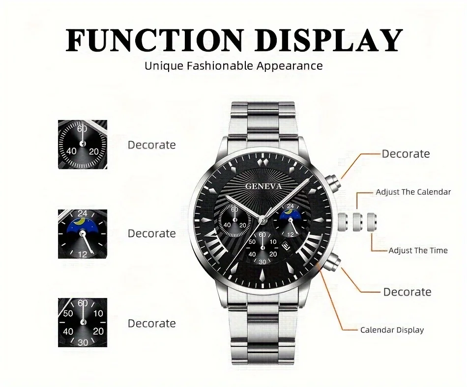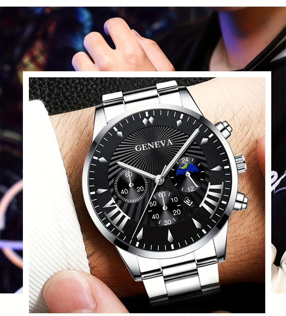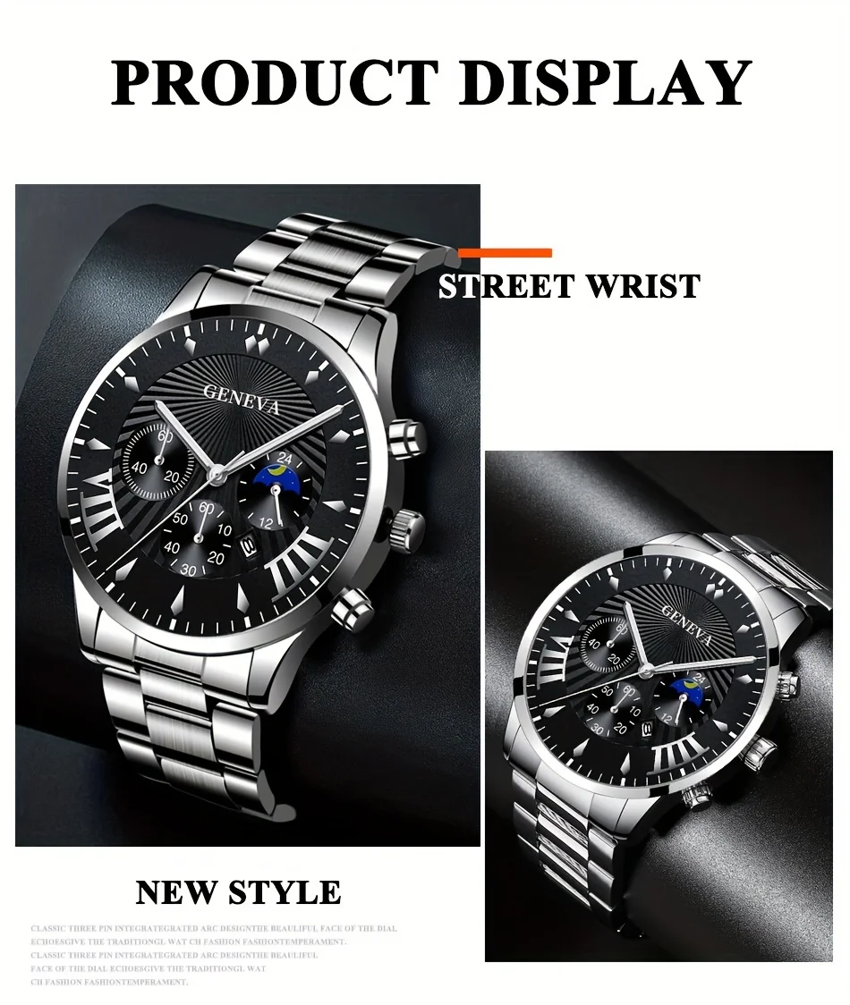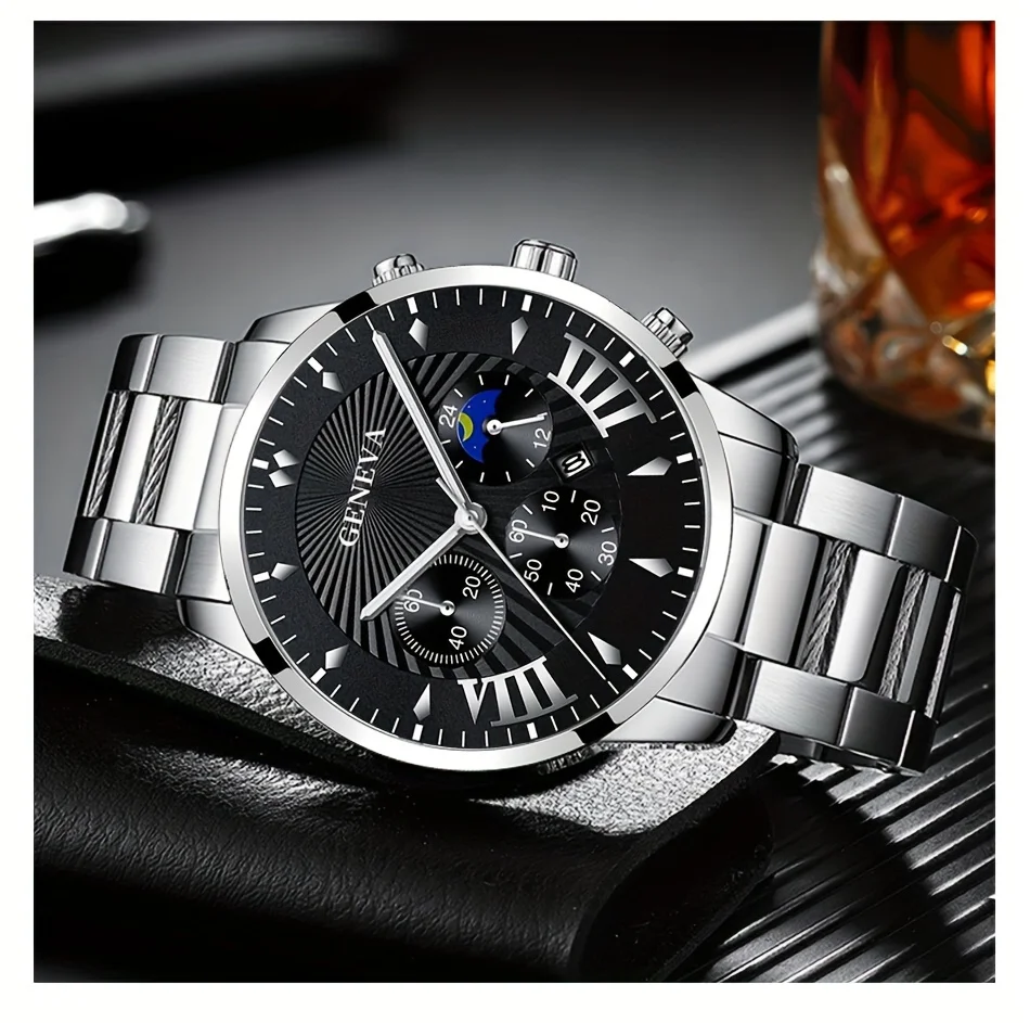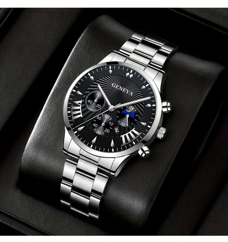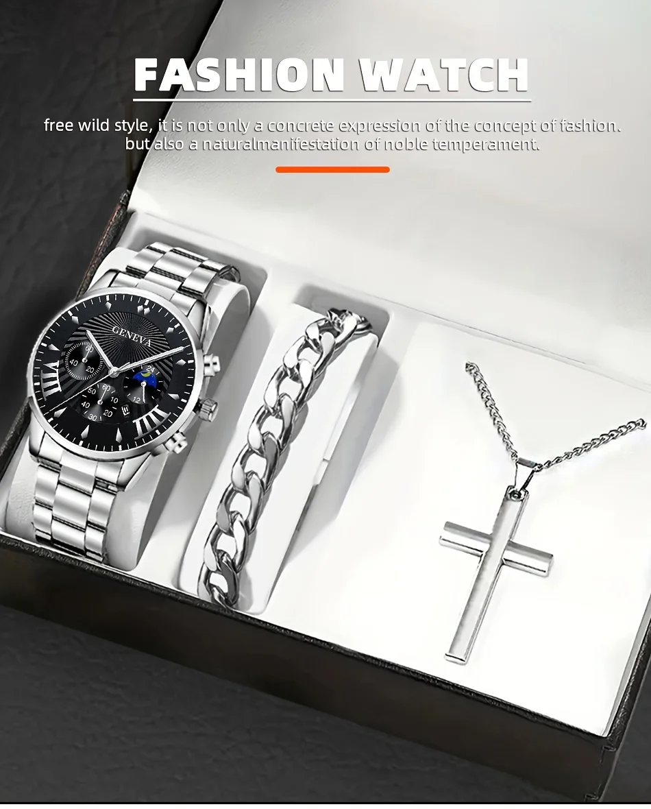 Be the first to review “3pcs/set, Classic Fashion Men’s Business Calendar Stainless Steel Quartz Watch & Bracelet Necklace Set, Gifts For Men” Cancel reply