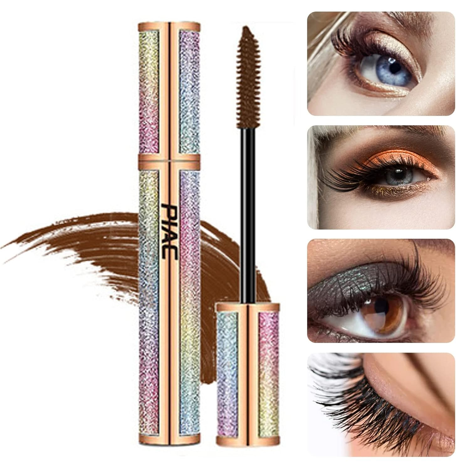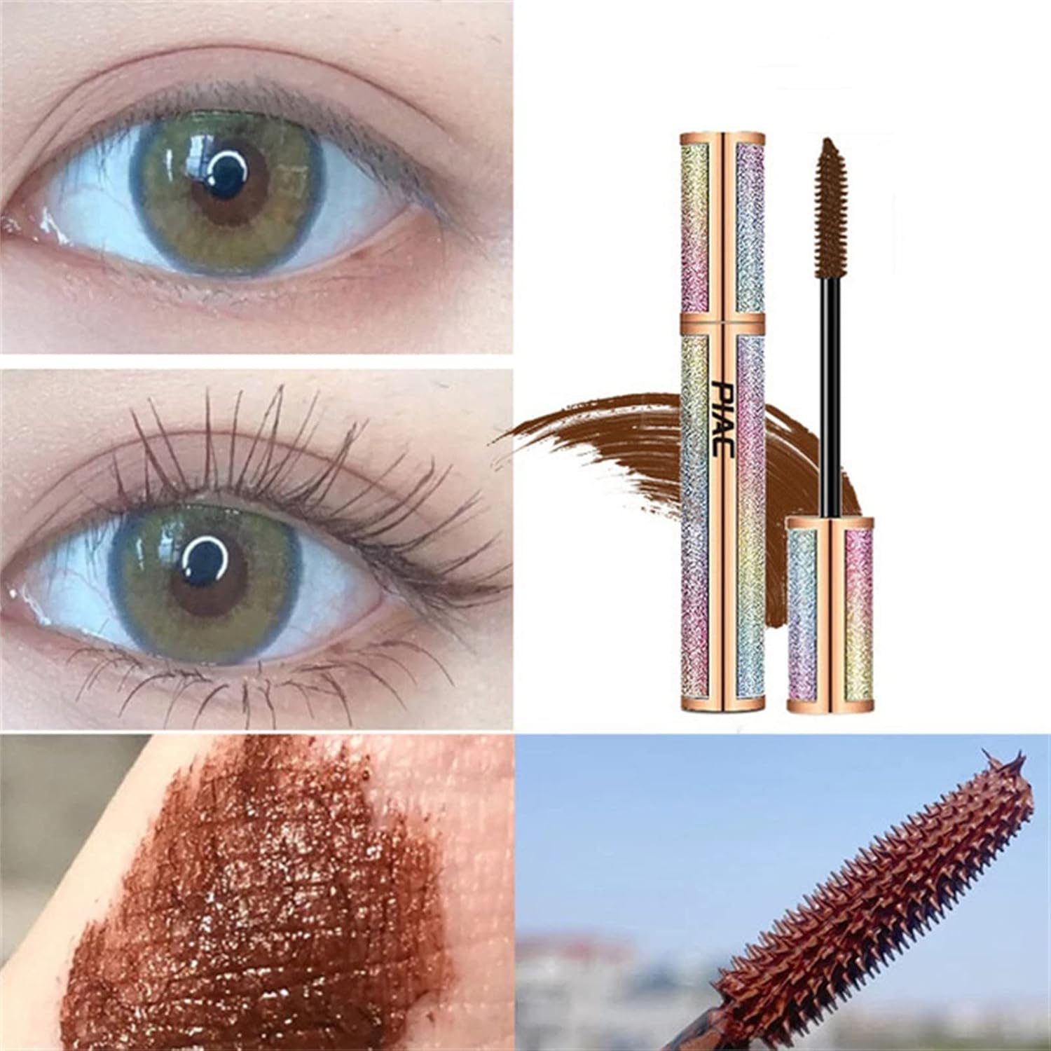 4D-Seidenfaser-Wimperntusche Wasserdicht, Volumen Und Länge Schwarz/Braun Mascara Für Längere Und Dickere Wimpern Make-Up
