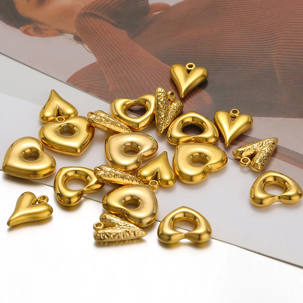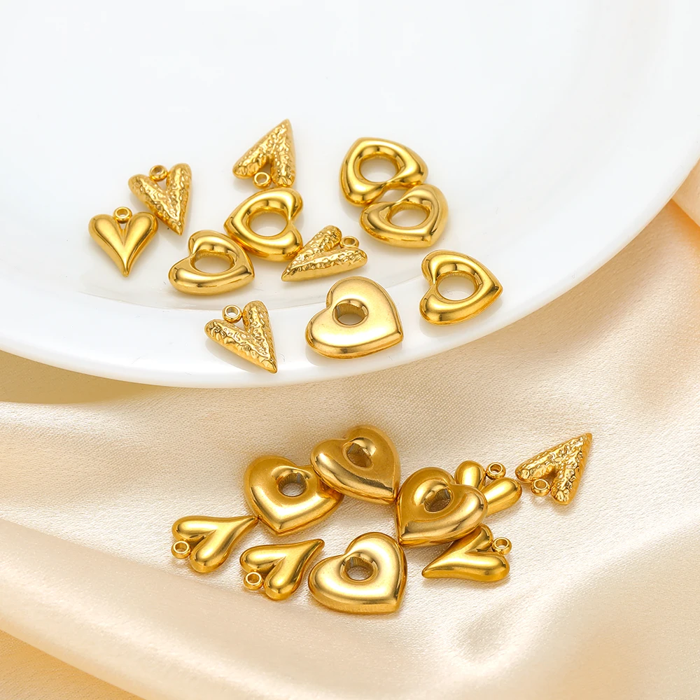5pcs Stainless Steel Big Hole Heart Charms Pendants for DIY Jewelry Findings Women Necklace Bracelets Supplies Earrings Making