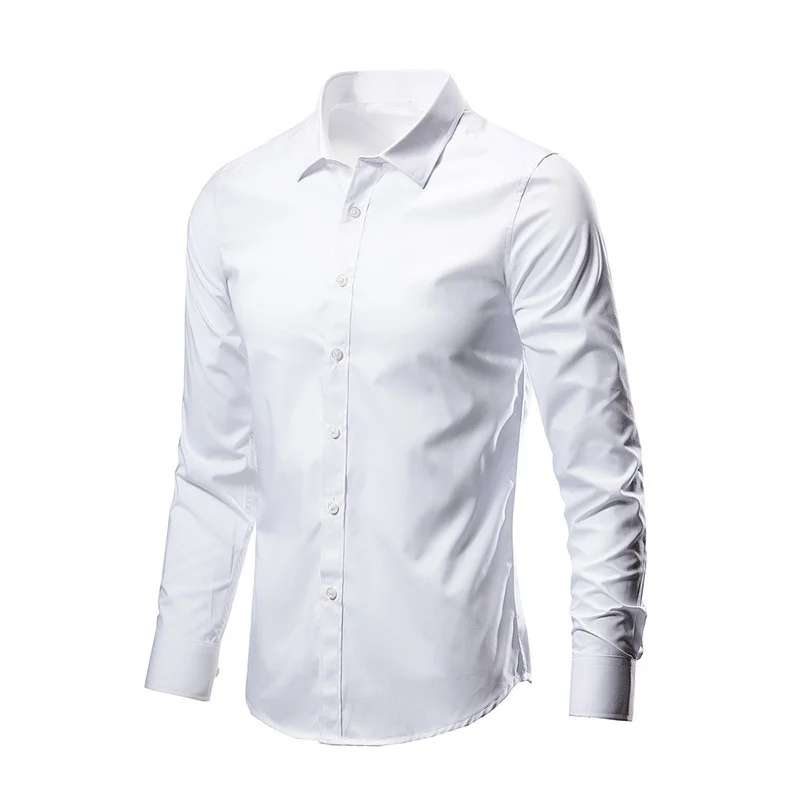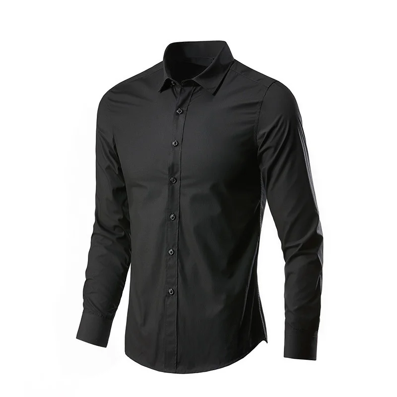 All Season Fashion Men’s Business Dress Slim Fit Working Shirt Anti-Wrinkle Solid Long Sleeve Social Formal Shirts For Men
