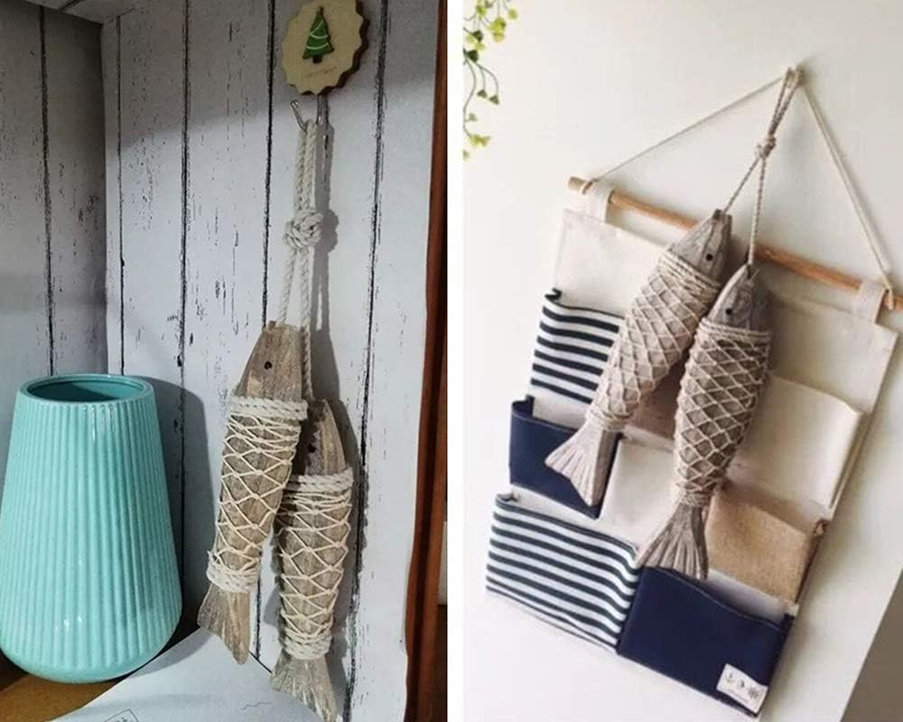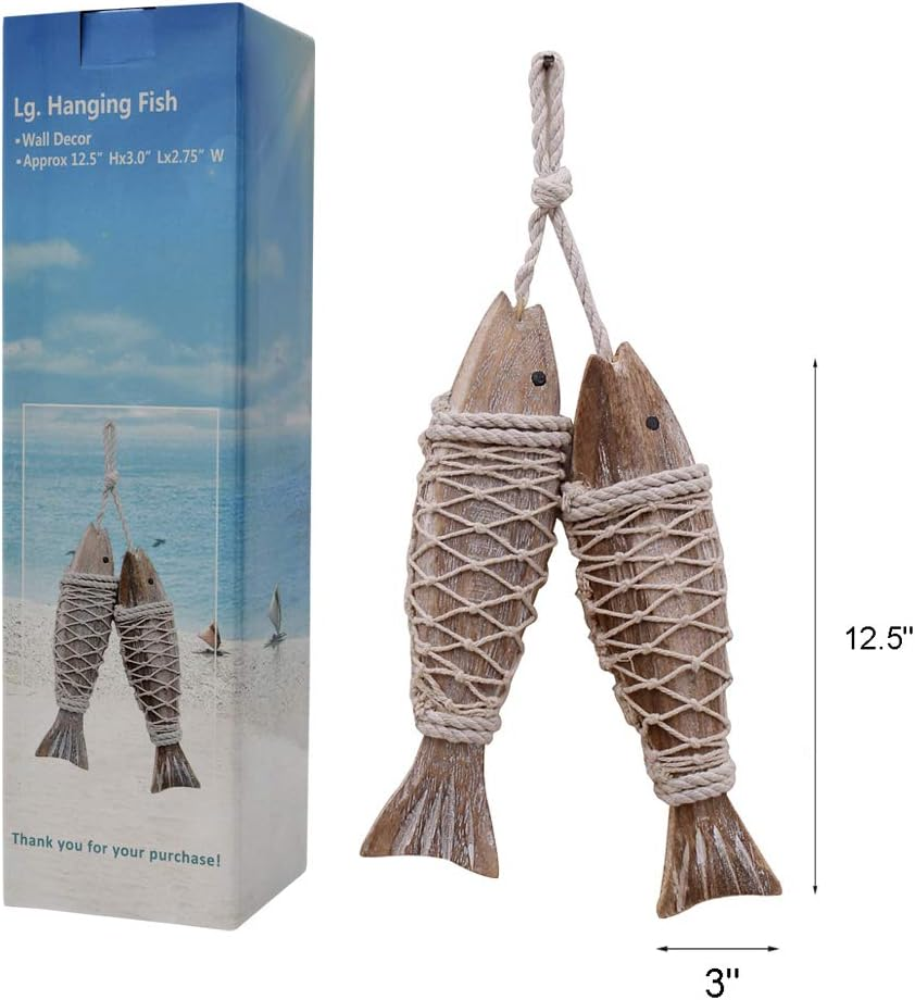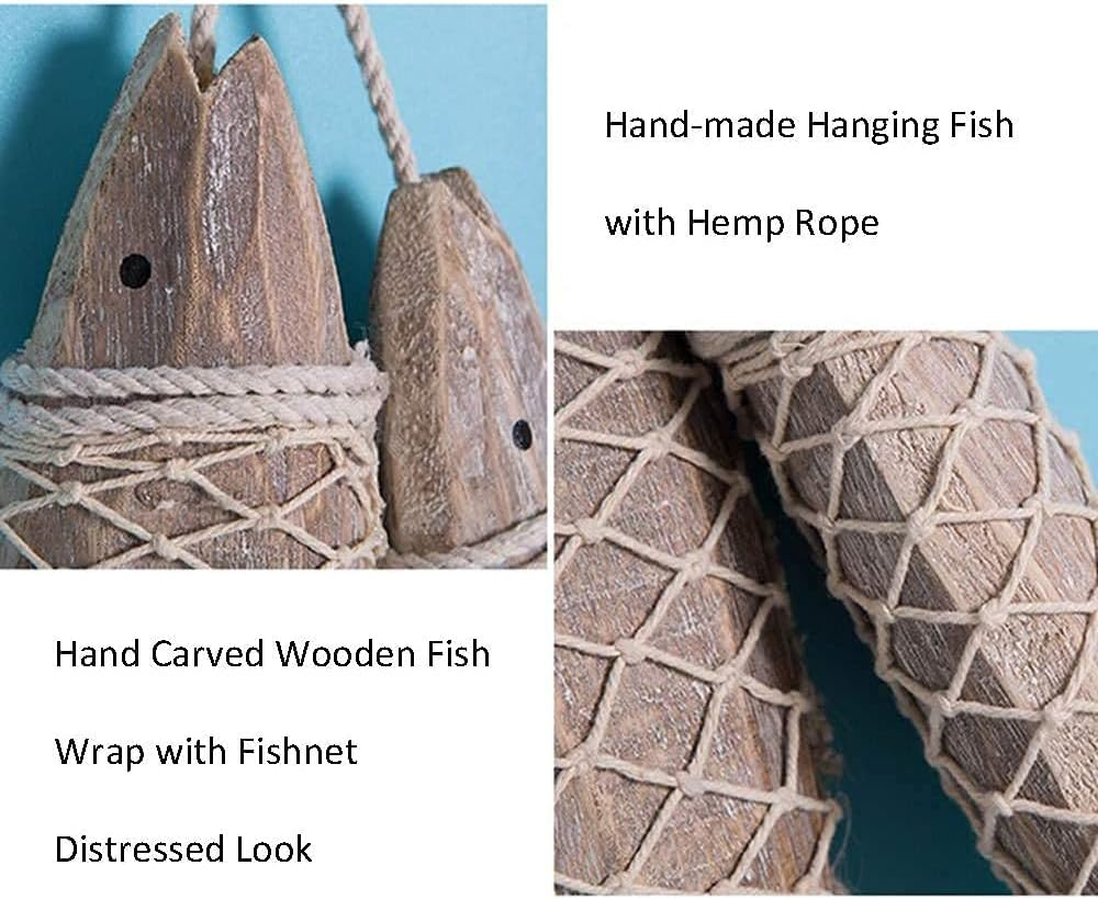 • Wood fish decoration: wood color, material: Rope + Wood, this fish nautical sculpture length is 12.5 inch.