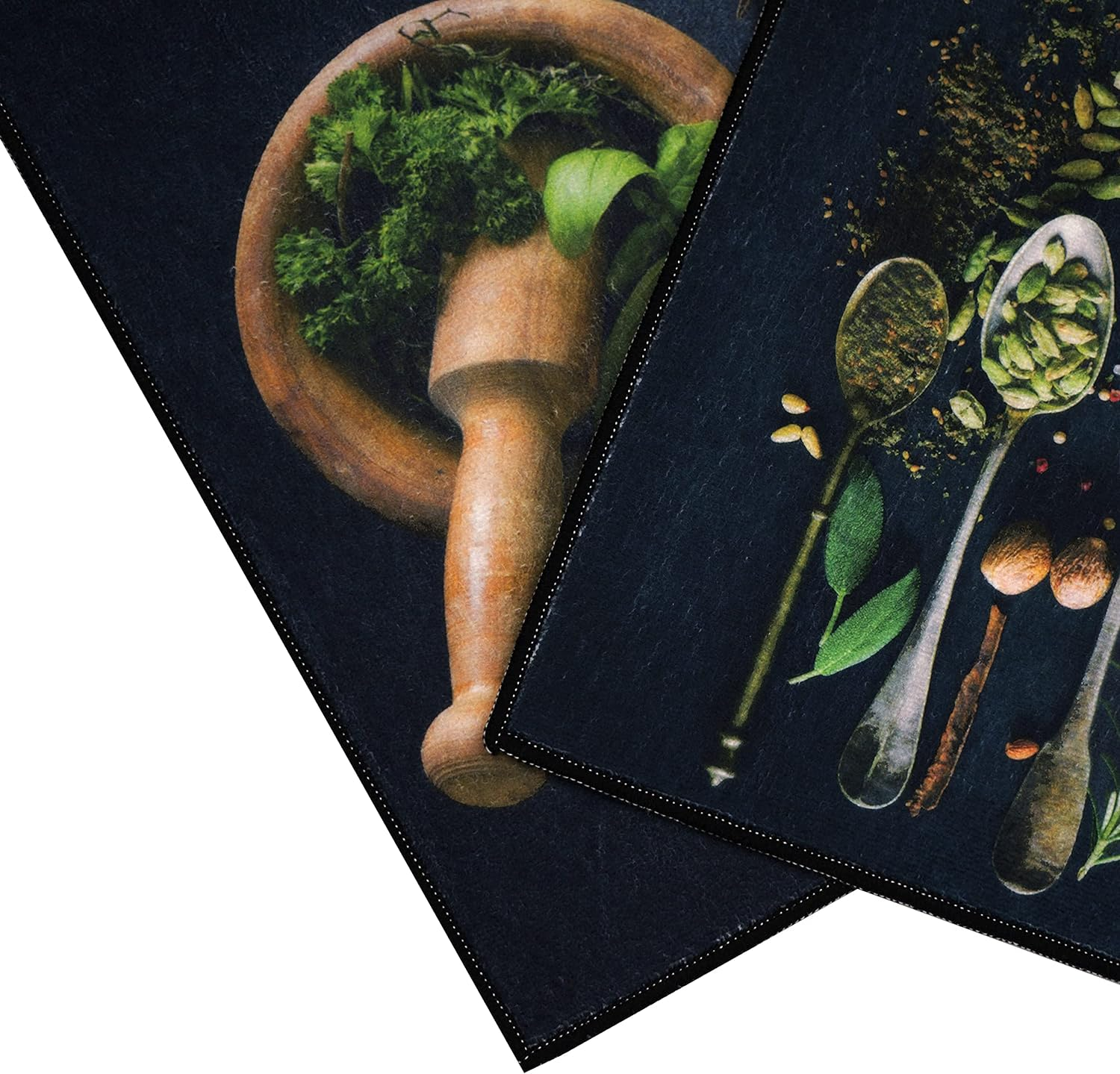 • ARTISTIC TOUCH! The kitchen is the center of a home full of life! Ensure to bring that liveliness, and brightness with our kitchen rug! Choose from a variety of professionally printed designs! Kitchen Rugs are made high quality with vibrant colors. Our two piece rug set fills the kitchen with energy! You will love washing dishes, baking, and cooking once you transform your kitchen. Fits perfectly with every kind of decor. The eyes of your guests will gravitate towards your decorative rugs!