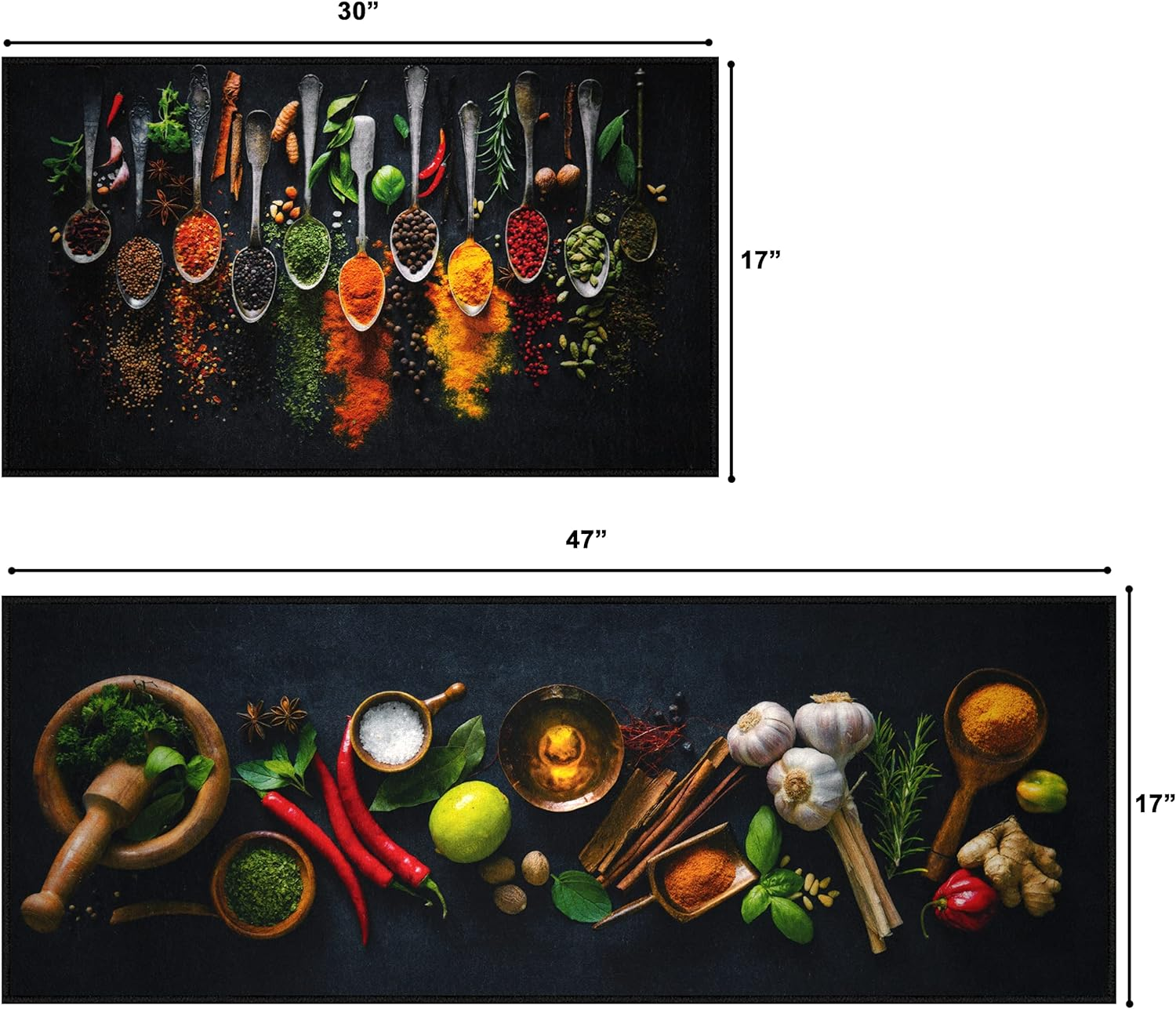 Artistic and Colorful Kitchen Rugs for Floor Non Slip Kitchen Rugs and Mats Kitchen Mat Set Farmhouse Kitchen – Spicy Art – 2 Pieces – 30″X17″ + 47”X17