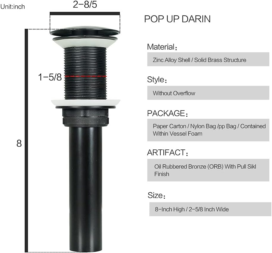 – Pop-up drain height: 8.0″