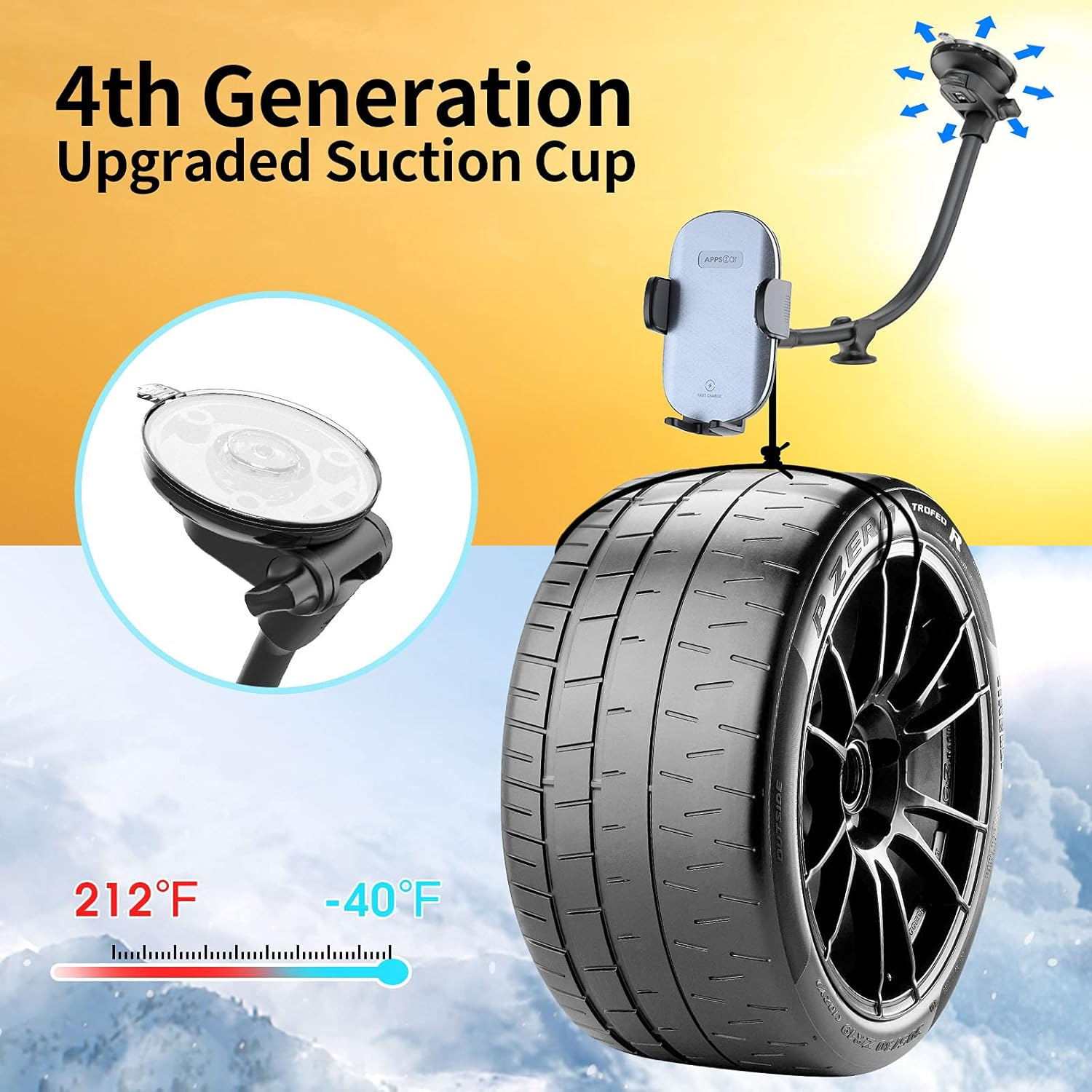 Car Phone Holder Mount Wireless Charging, 15W Wireless Car Charger Mount, Windshield Dash Phone Holder [With QC 3.0 Adapter] Compatible with Iphone 13 12 Mini 11 Pro Max, Samsung, Lg-Iron Gray