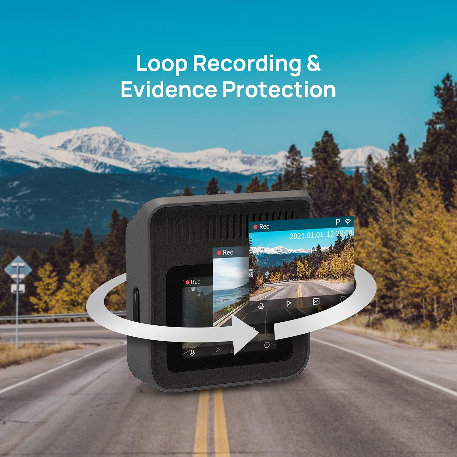- 【Loop Recording & Evidence Protection】This smart dash cam automatically overwrites the oldest videos with the latest ones. The videos can be automatically saved and stored locally on a microSD memory card while driving, which ensures the video evidence will be captured and safely secured from overwriting. It supports high-endurance Class 10 (and above) microSD memory cards from 16GB up to 128GB (not included)