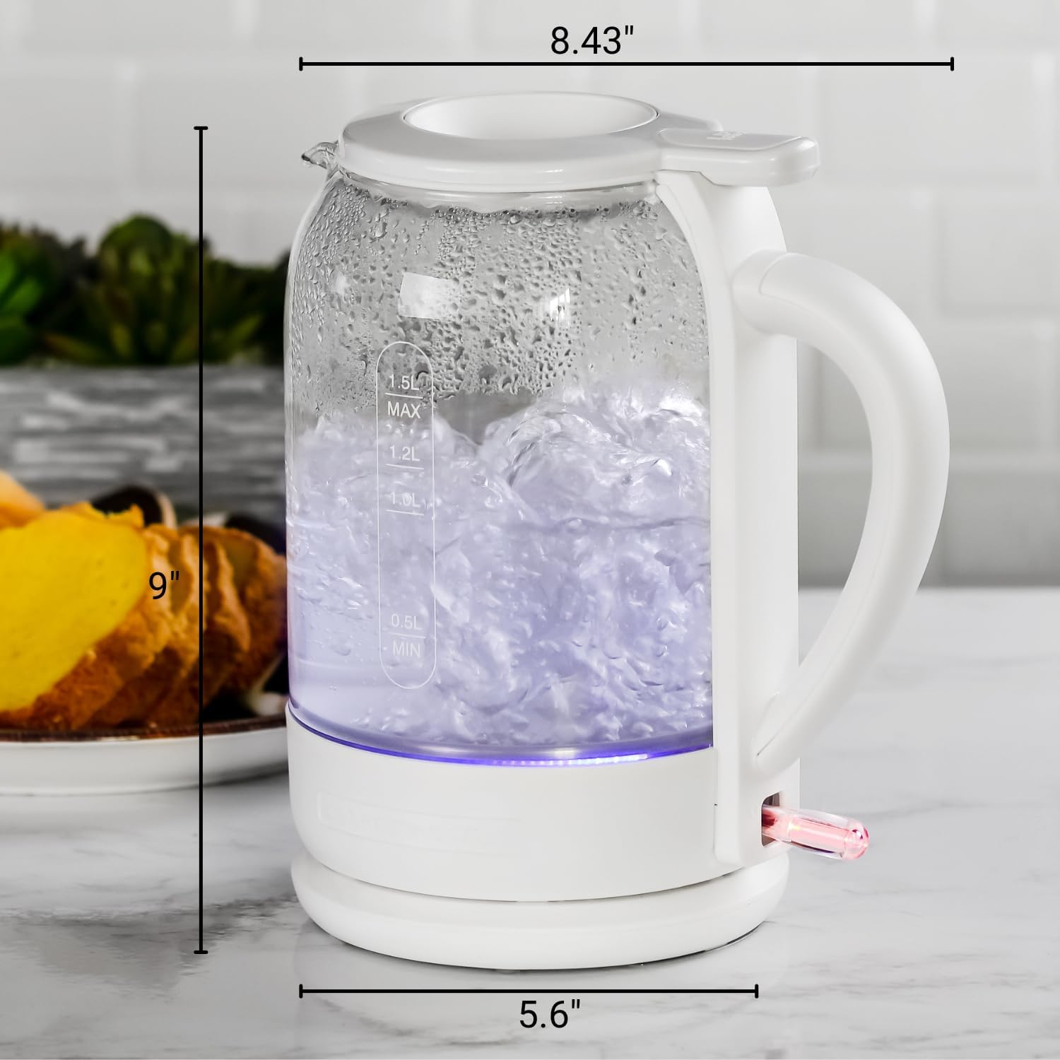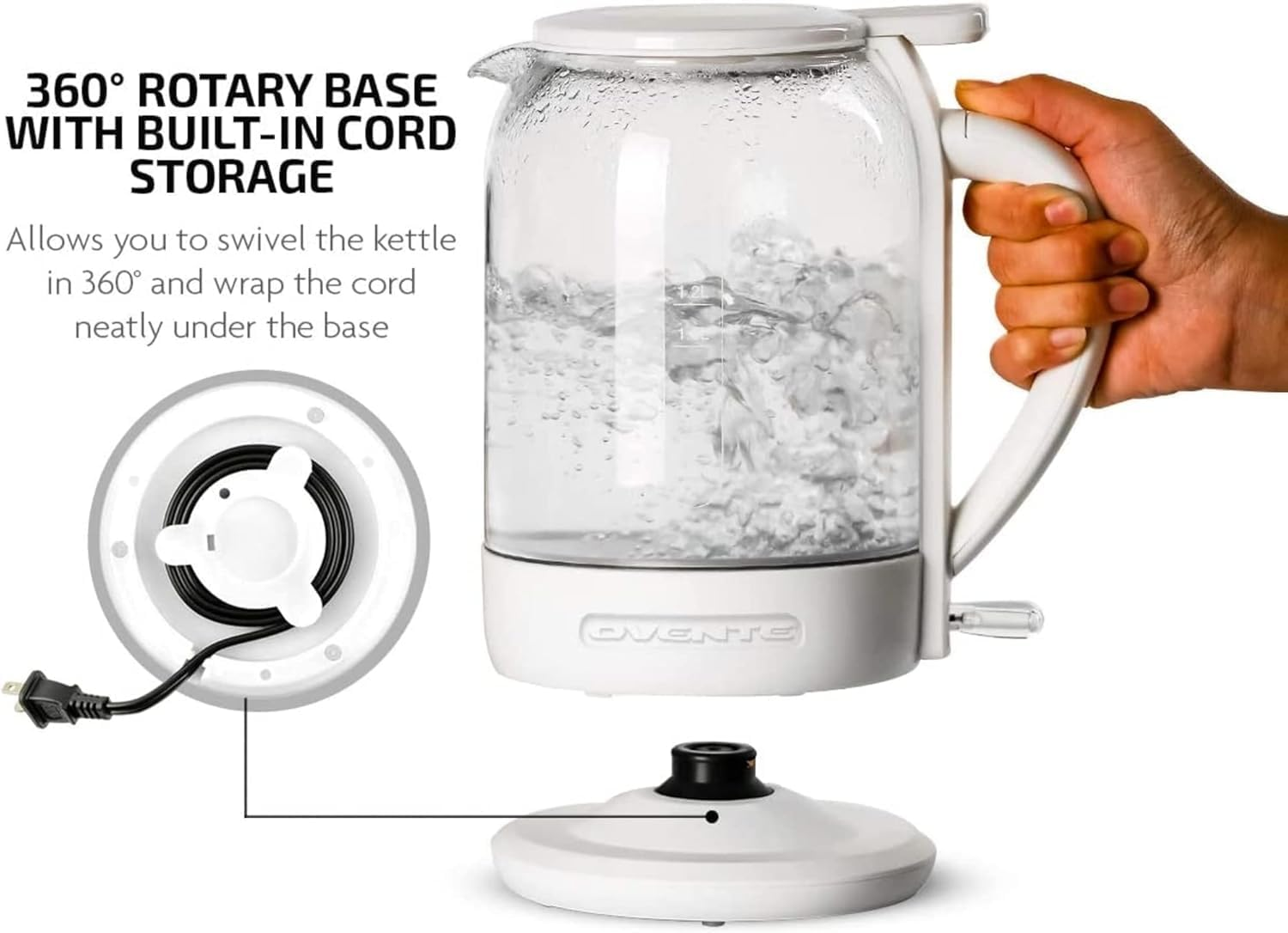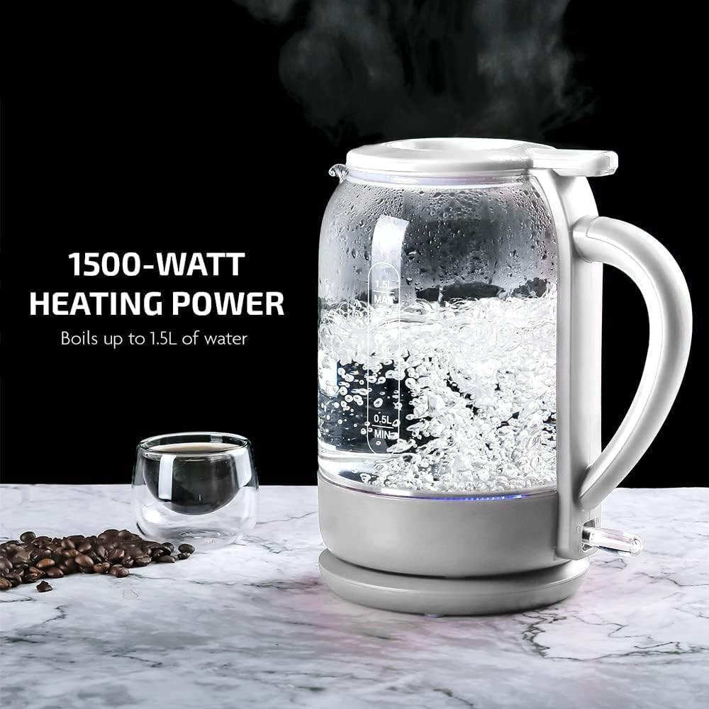 • STYLISH DESIGN – Crafted with high-quality, heat-tempered borosilicate glass, this kettle remains sleek and exquisite even after years of use, making it a must-have in your modern kitchen. It features a rotary base that swivels 360° with built-in cord storage, adding a touch of class to your kitchen countertop or dining table.