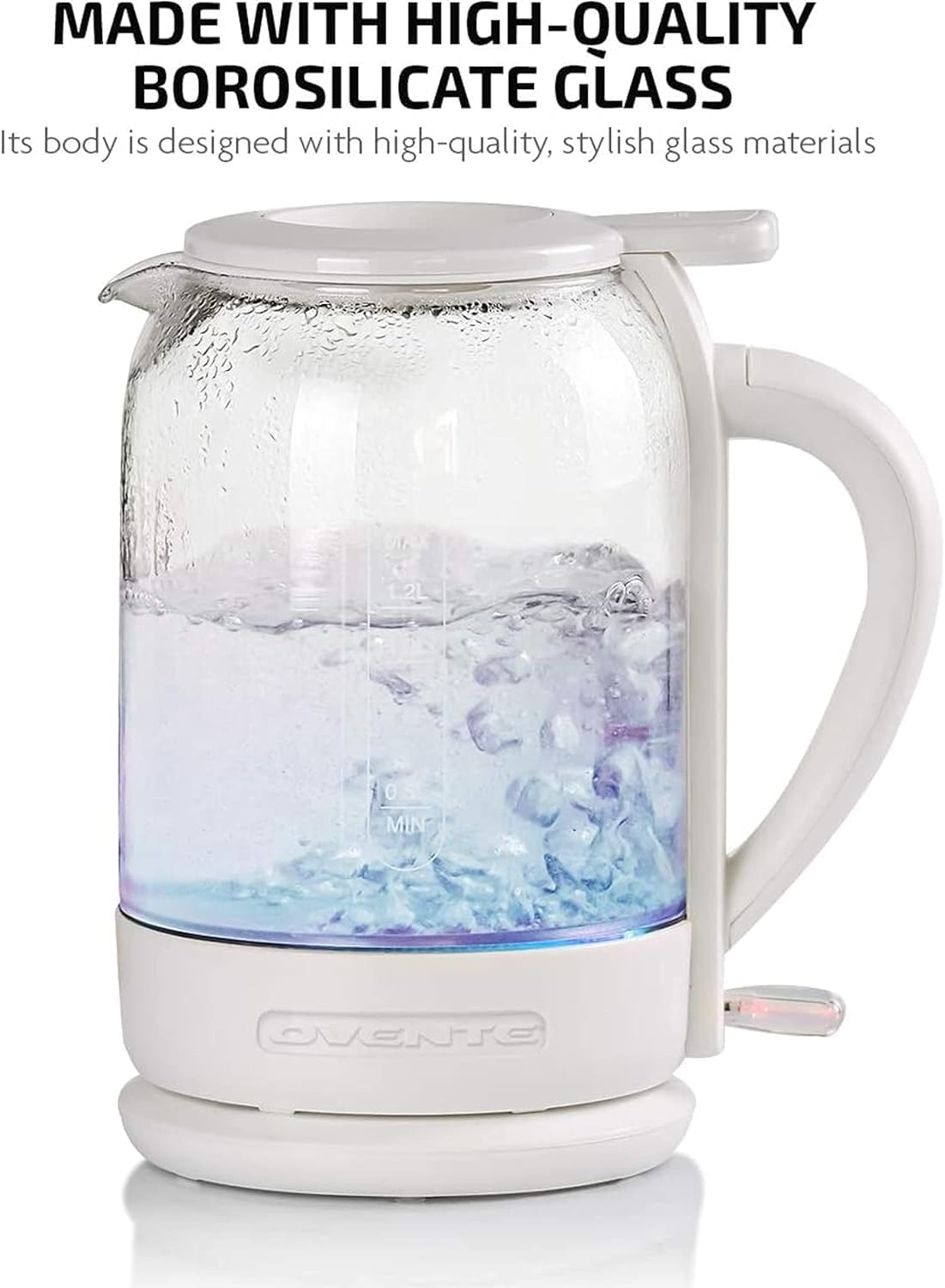 Tired of struggling with traditional, hard-to-fill, rusty kettles? Why settle for less when OVENTE offers a durable, convenient, and elegant solution? With the OVENTE Electric Glass Kettle KG516 Series, filling your kettle is easier than ever! Now, the only time you need to remove the lid is to clean its glass interior with a soft cloth. This kettle heats water through its electric warming base, which is safer and quicker than heating water in a teapot on the stove. It also features a centralized water gauge, making it easier to measure the amount of water. A halo of blue LED lights illuminates the kettle when in use, adding a modern touch. With auto-shut off and boil-dry protection, you can be sure you’re safe while saving electricity. OVENTE proves that you don’t have to sacrifice beauty for functionality—this kettle offers both! It’s the perfect addition to your kitchen or a thoughtful wedding gift. NOTE: Electric kettles may reach boiling faster at higher altitudes due to the fluctuation of boiling points. **CAUTION: KETTLE BODY MAY BE EXTREMELY HOT DURING OPERATION. PLEASE BE EXTRA CAREFUL AND USE THE COOL-TOUCH HANDLE TO AVOID BURNS.**