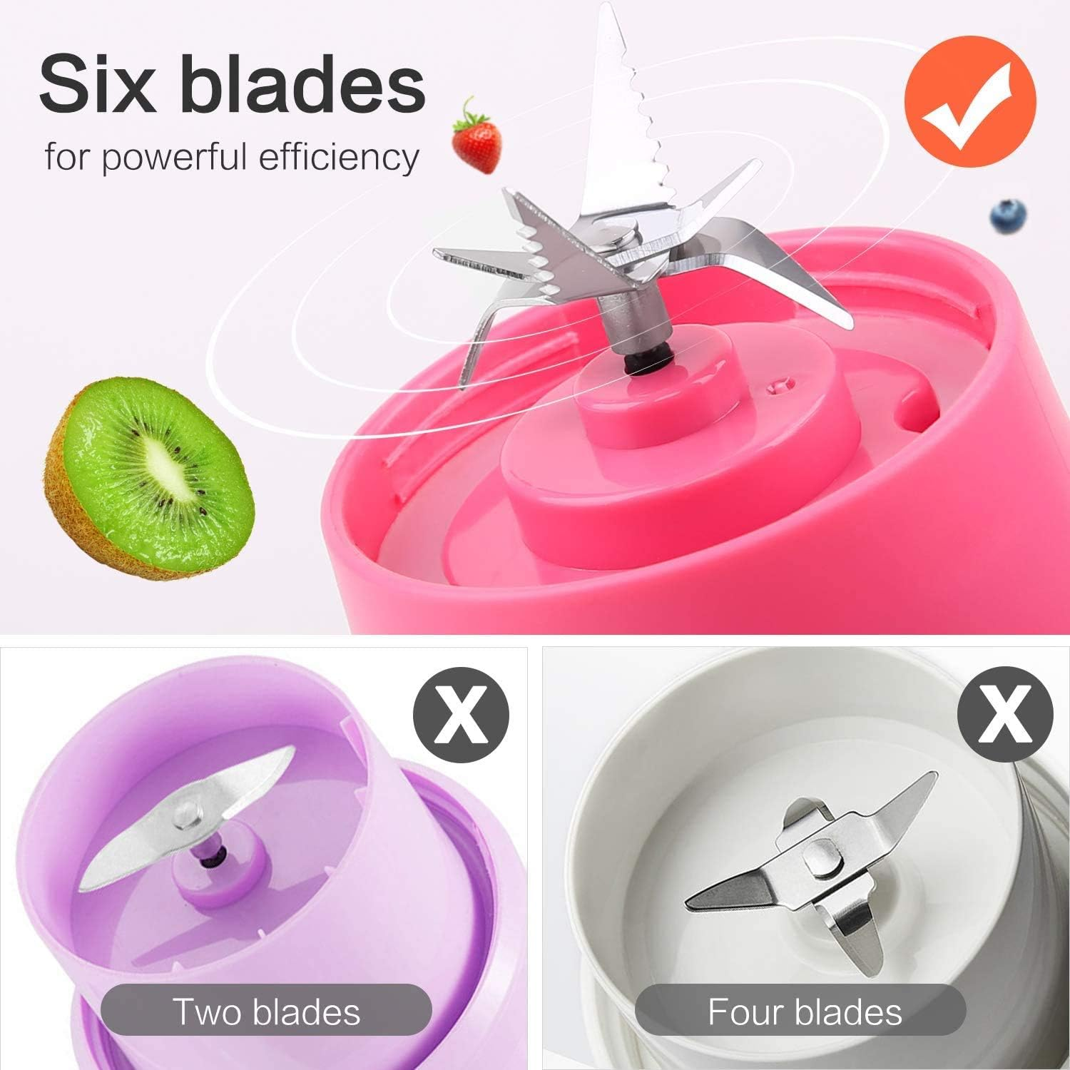 Electric Portable Juicer Blender Cup, Household Fruit Mixer with Six Blades in 3D, 380Ml USB Rechargeable Juice Blender Magnetic Secure Switch Electric Fruit Mixer (Light Blue)