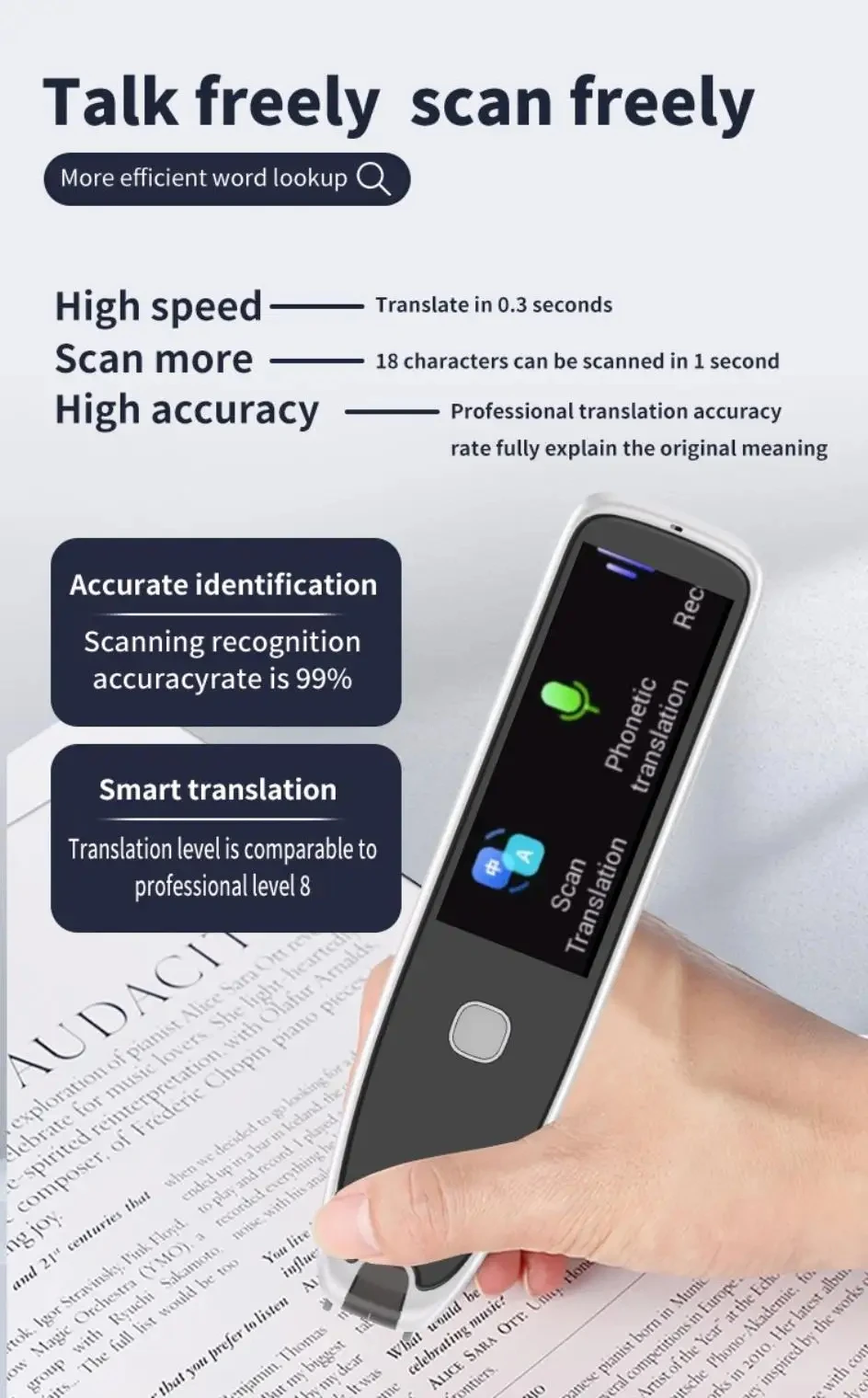 H2 Portable Electronic Translation Pen, 112 Language Translation, Instant Text Scanning, Reading Speech Scanning
