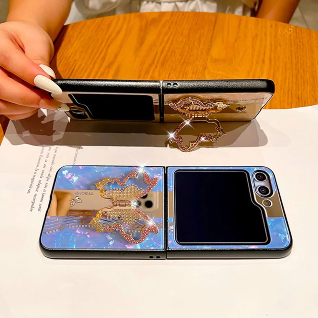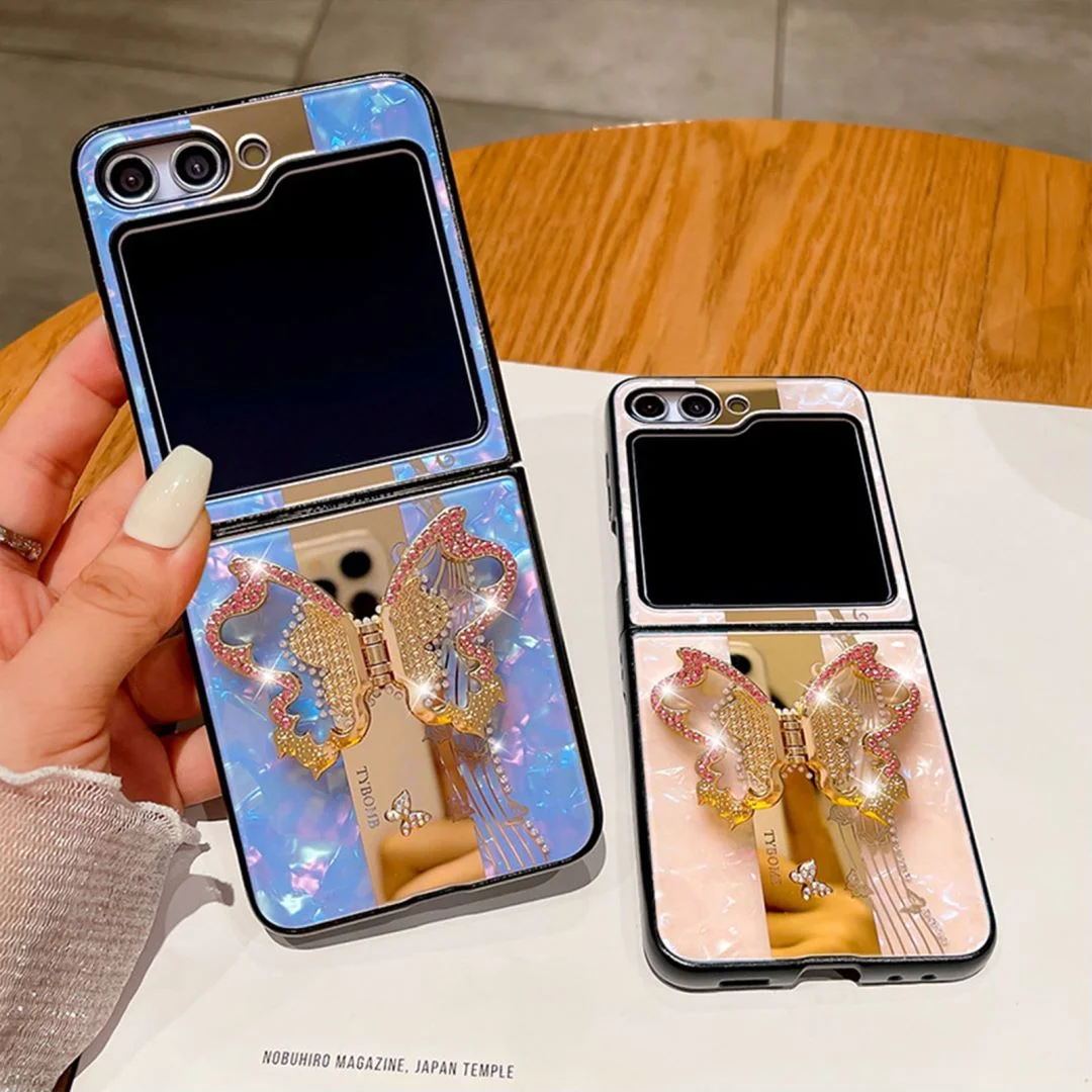 【Compatible Model】Kickstand Case for Samsung Galaxy Z Flip 5 with Ring Lanyard Bling Butterfly Shockproof Cover for Girls Women.