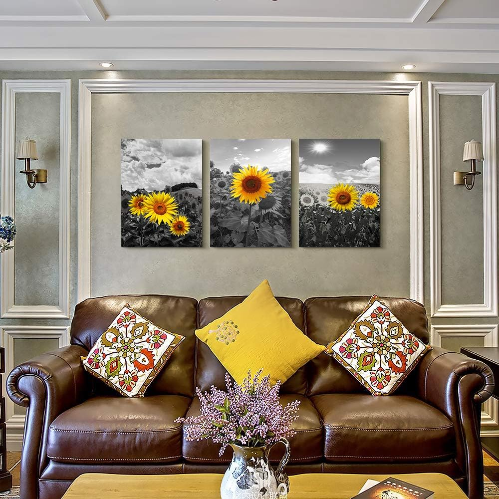 Large size Canvas Wall Art for Living Room family Bedroom wall painting Decoration ,Bathroom Wall Decor kitchen Home Decoration Black and white sunflower flowerswall pictures artwork,16×24 3 piece