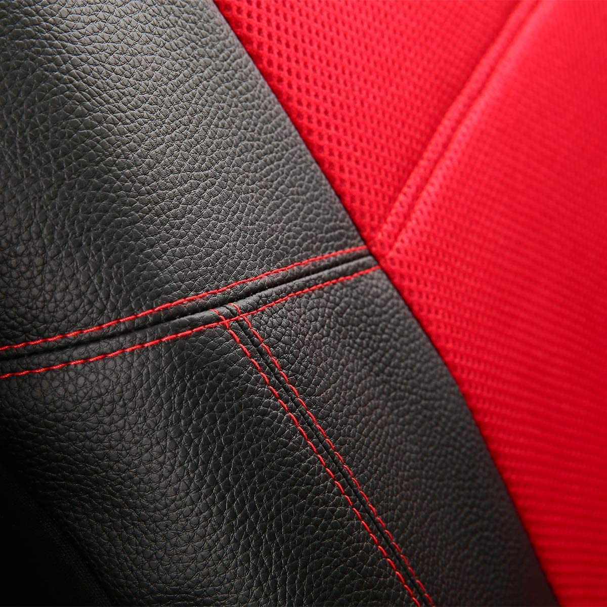Leather and Mesh Car Seat Cover Full Set in 9Pcs Universal Fit for Cars Trucks Vans & Suvs Airbag Compatible (Red)