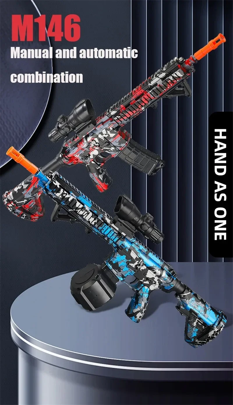 M416 Toy Gun 7.4V High-speed Burst Gel Ball With Orange Plug And Double Magazine For Outdoor Interactive Parent-child Games.