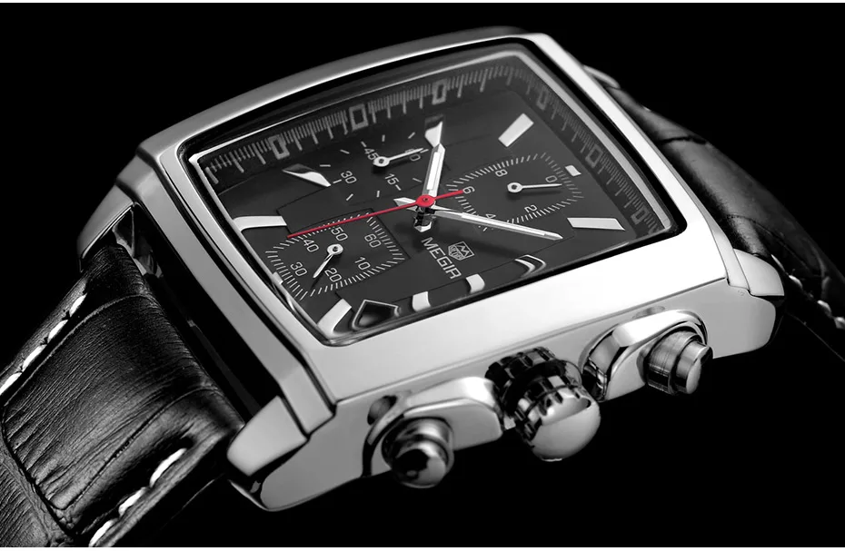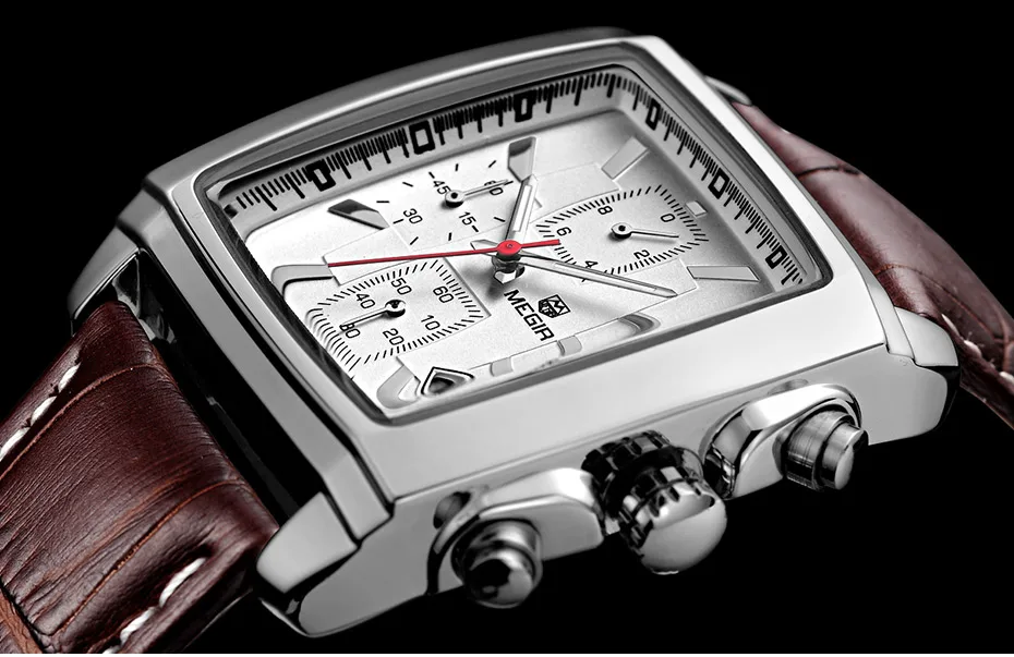Megir Quartz waches man Rectangle Dial Leather Strap Watch for Men Casual Blue chronograph Wristwatch montre