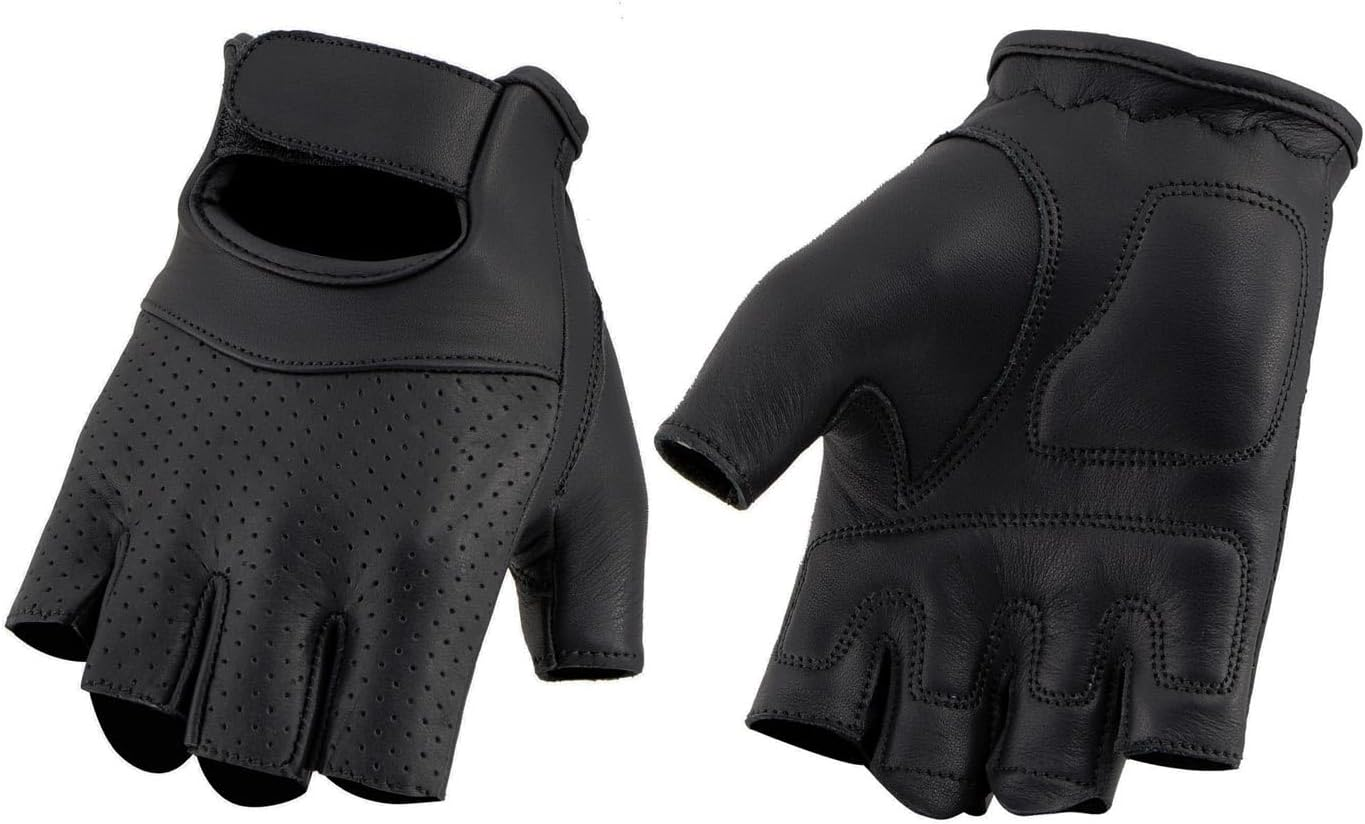 Milwaukee Leather MG7780 Women’s Black Leather Perforated Fingerless Gloves with Gel Palms