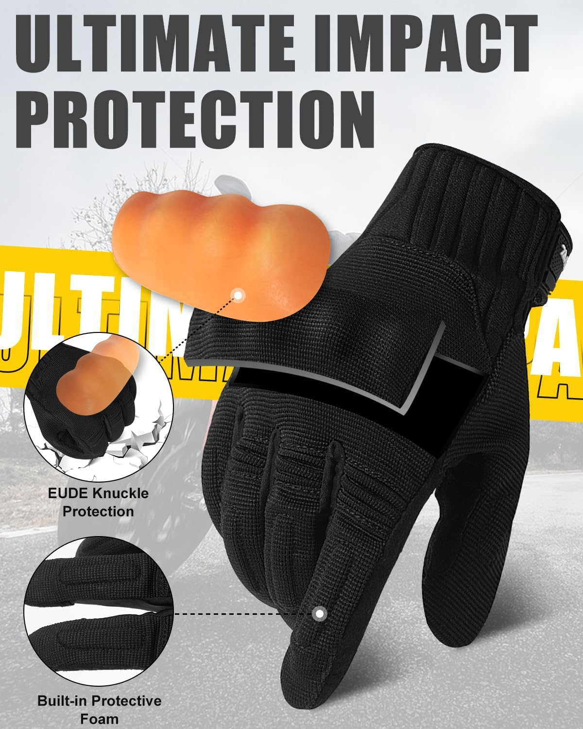 - Advanced EUDE FOAM Impact Protection: EUDE FOAM is an anti-impact material that is soft under normal conditions but will become a high-elastic solid hard shell on a high-speed impact. After the impact, the gel can be restored to a soft state within a few milliseconds. Our motorcycle riding gloves has better impact energy absorption for excellent impact protection while racing (note: If you like a loose fit, you can choose to increase the size by one or two)