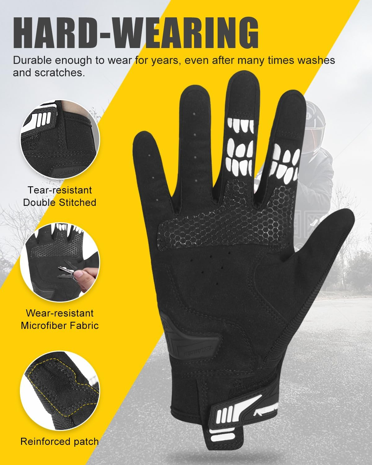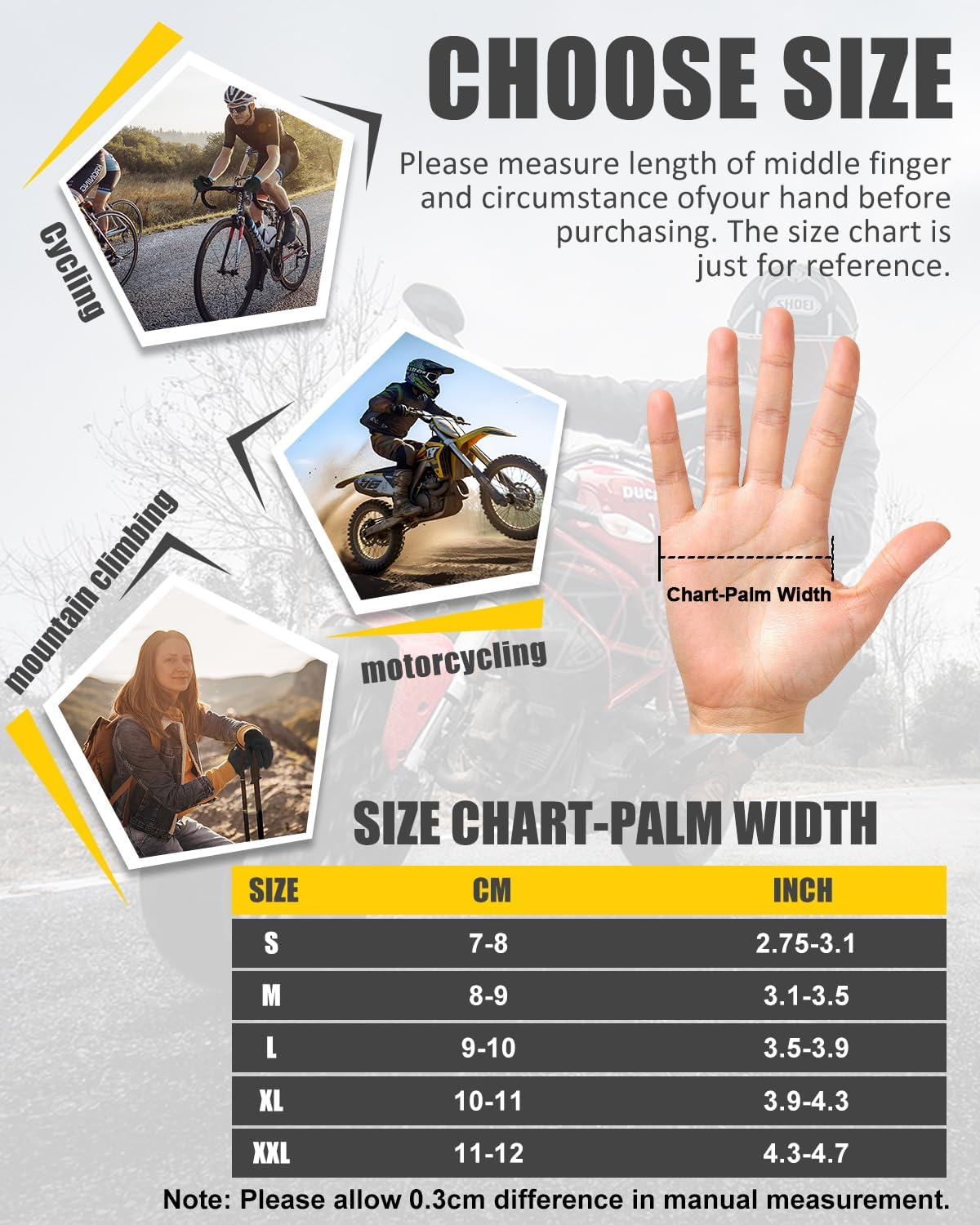 Motorcycle Gloves for Men Women, Touchscreen Riding Motorcycle Gloves with TPR Palm Pad and Hard Knuckles (Tips: Gloves Run Small, Please Choose One or Two Sizes Larger than Usual Size)