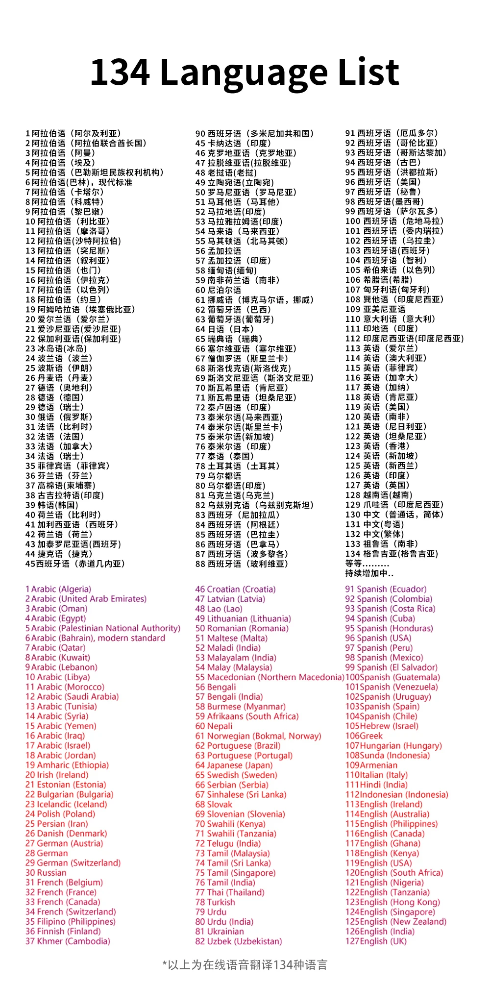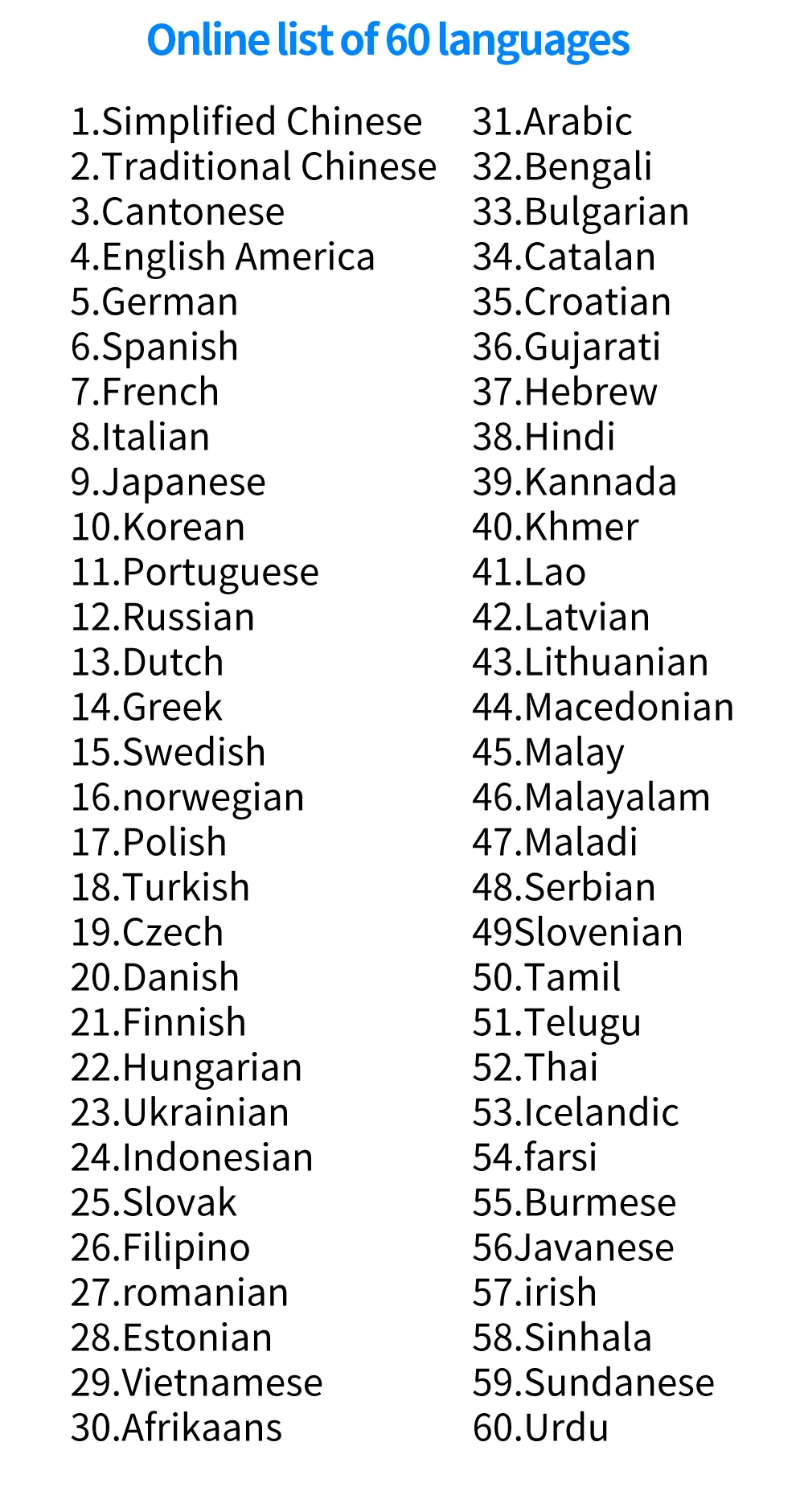 - Output Language: Spanish,Chinese,Arabic,Russian,FRENCH,KOREAN,Portuguese,japanese,English