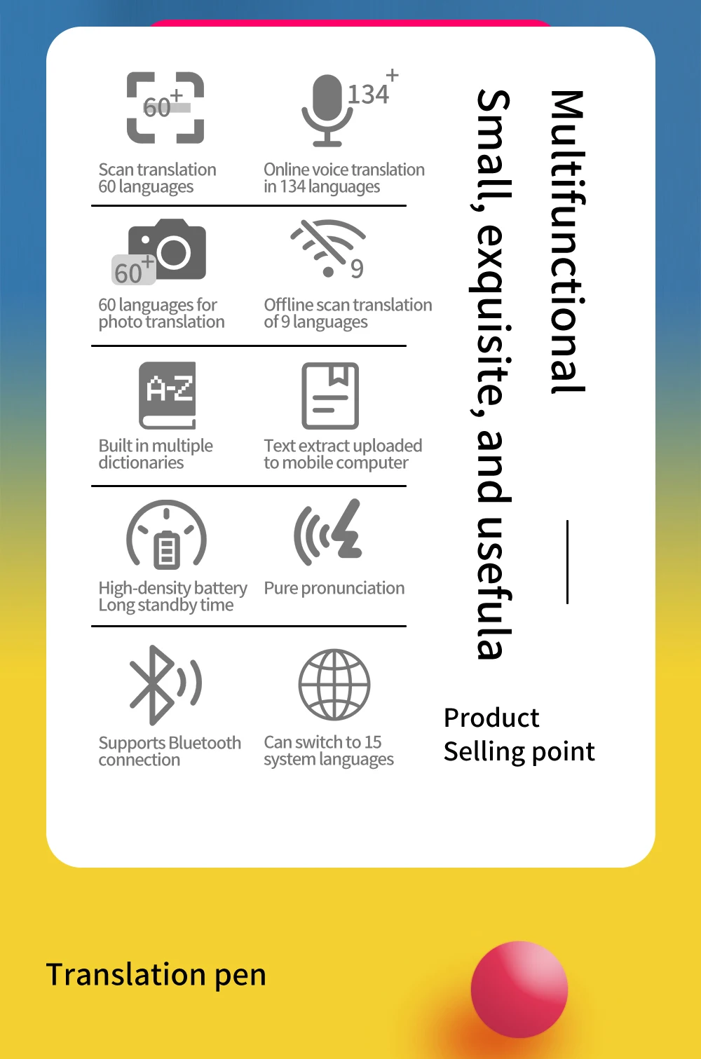 Multifunctional translation pen – supports 100+ language translations, multiple translation modes + photo and recording function