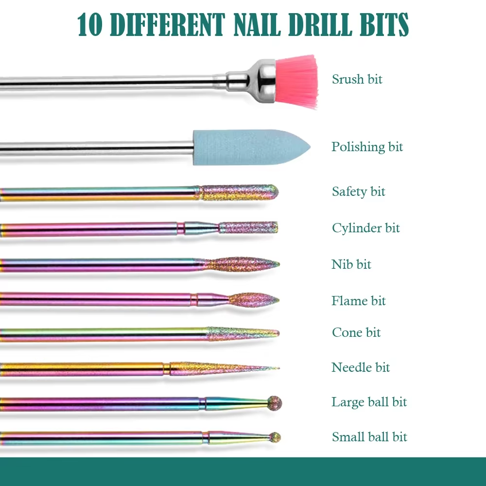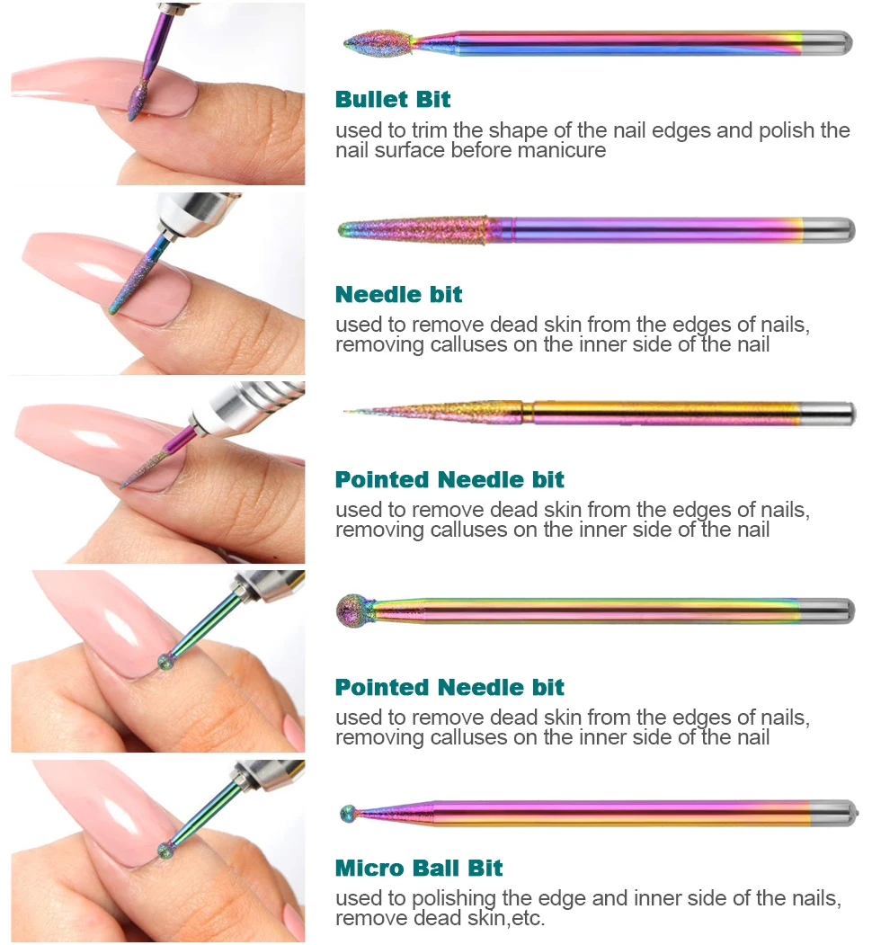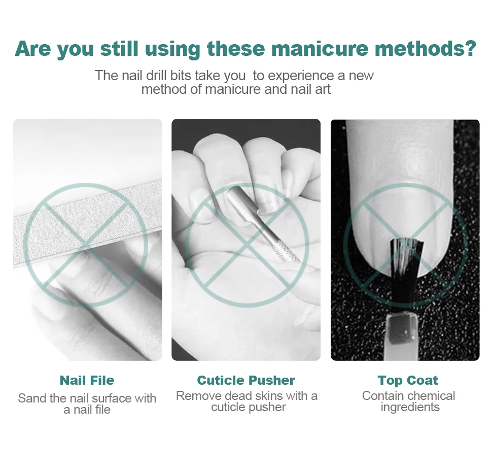 3.Different nail bits combination to trim and polish your natural nails, especially remove edge and sidewall cuticle, and dead skin.