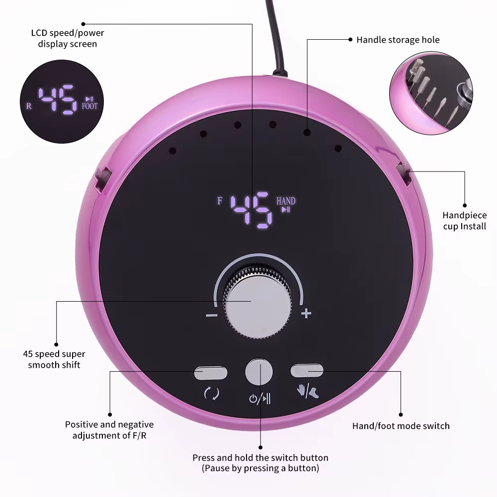 New 45000RPM Professional Electric Nail Drill Manicure Machine Low Noise Nails Sander Set Nail Salon Polisher Equipment Tools