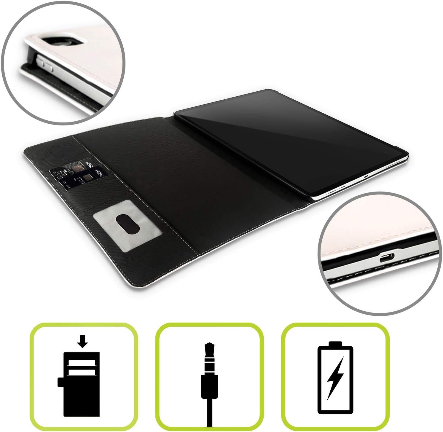 These durable yet lightweight cases allow hands-free viewing and has convenient easy access feature slots for your cards and cash that are safely secured with a magnetic closure system.