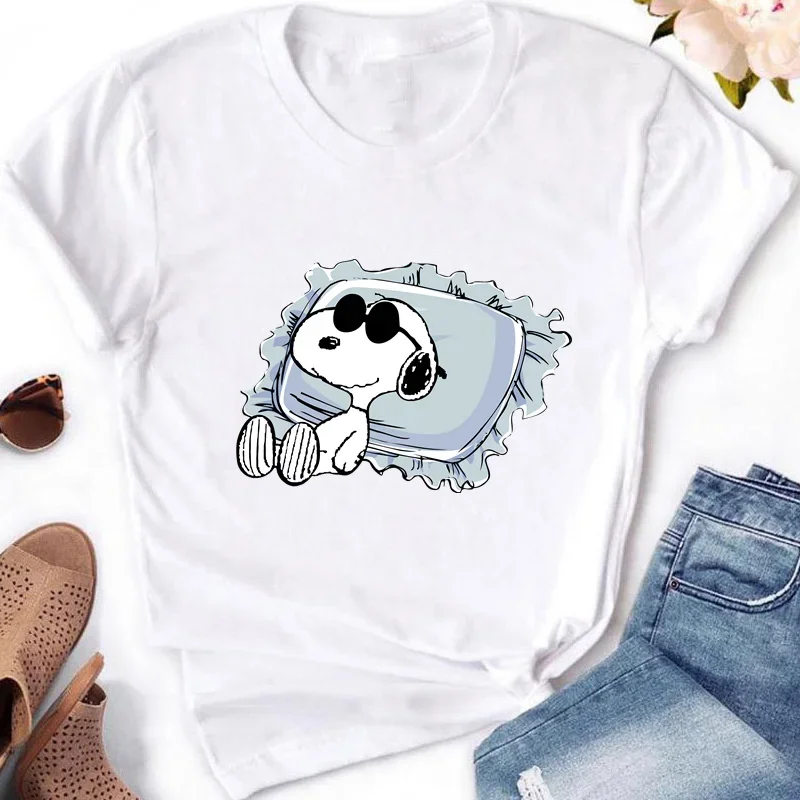 Painting Snoopy Animal 2024 Ladies Dogs Pattern Printed Summer Casual Short-Sleeved Girls T-Shirt Tees Tops Female Cute T Shirt