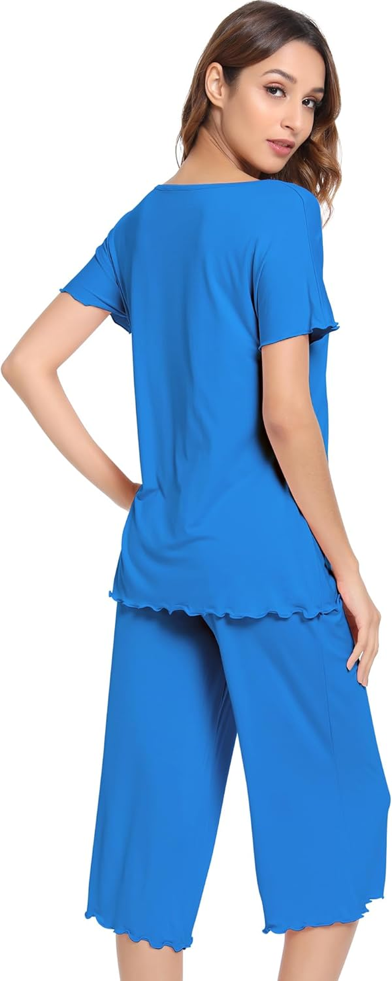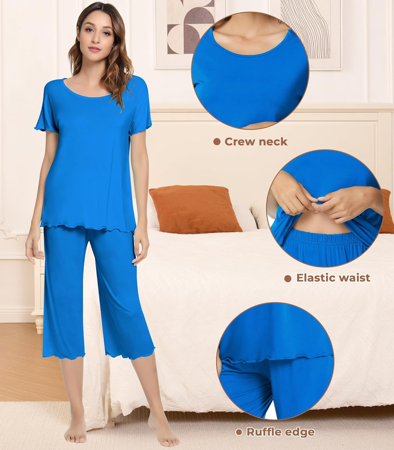 Pajamas for Women-Viscose Made from Bamboo,Soft Capri Pants Pajama Sets plus Size Pjs Cooling Short Sleeve Sleepwear