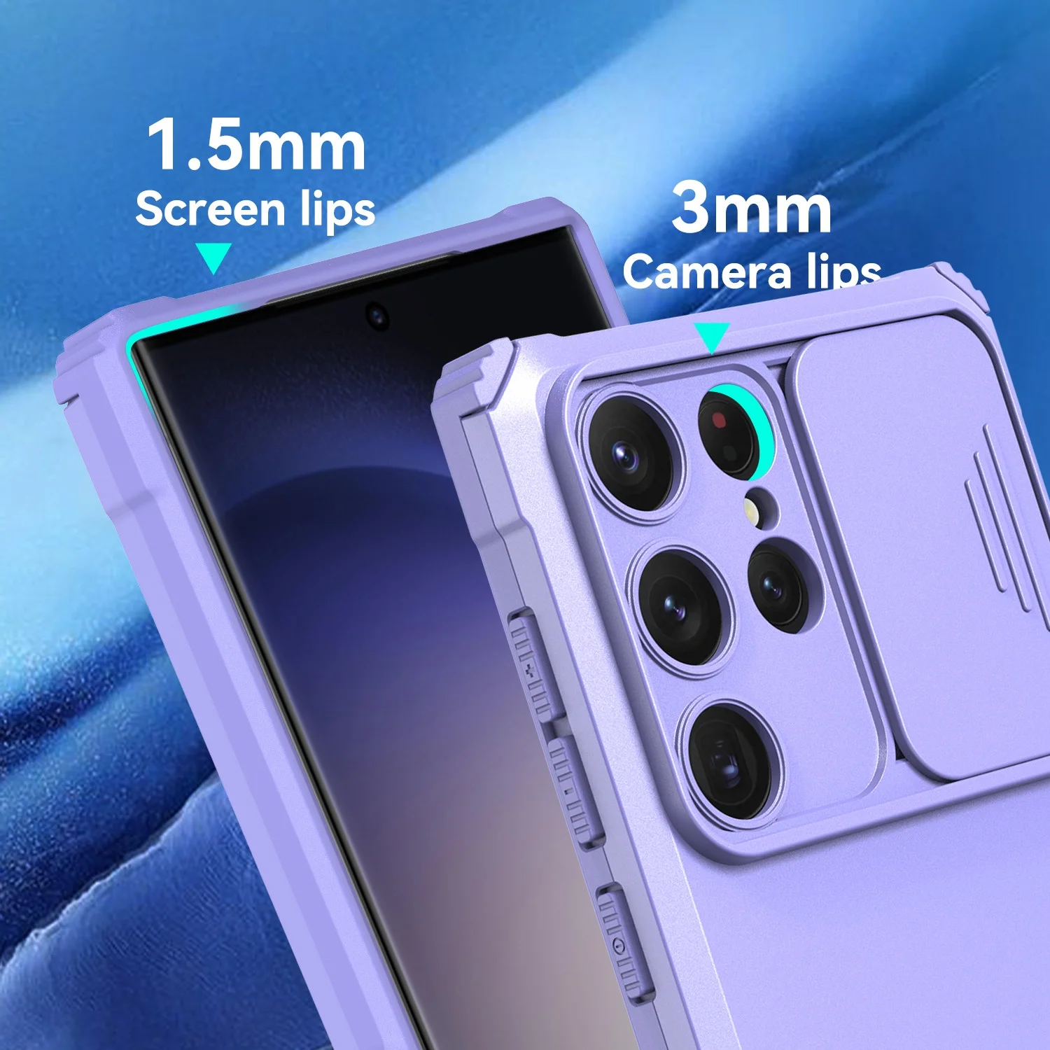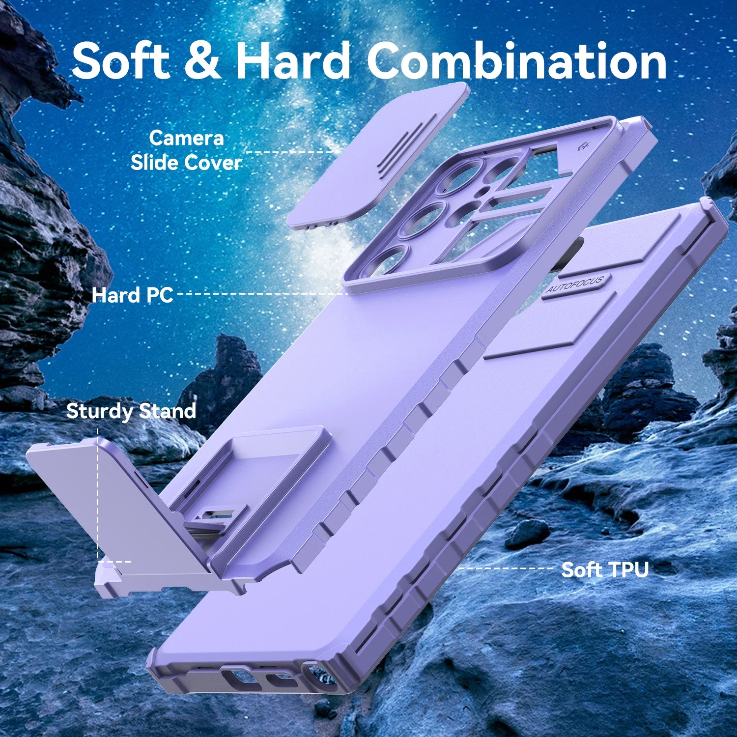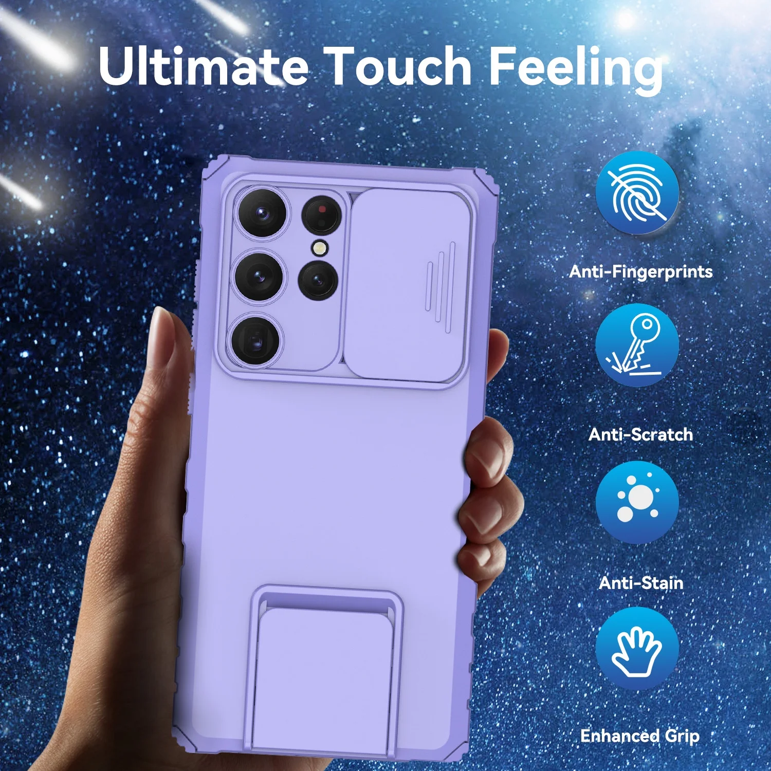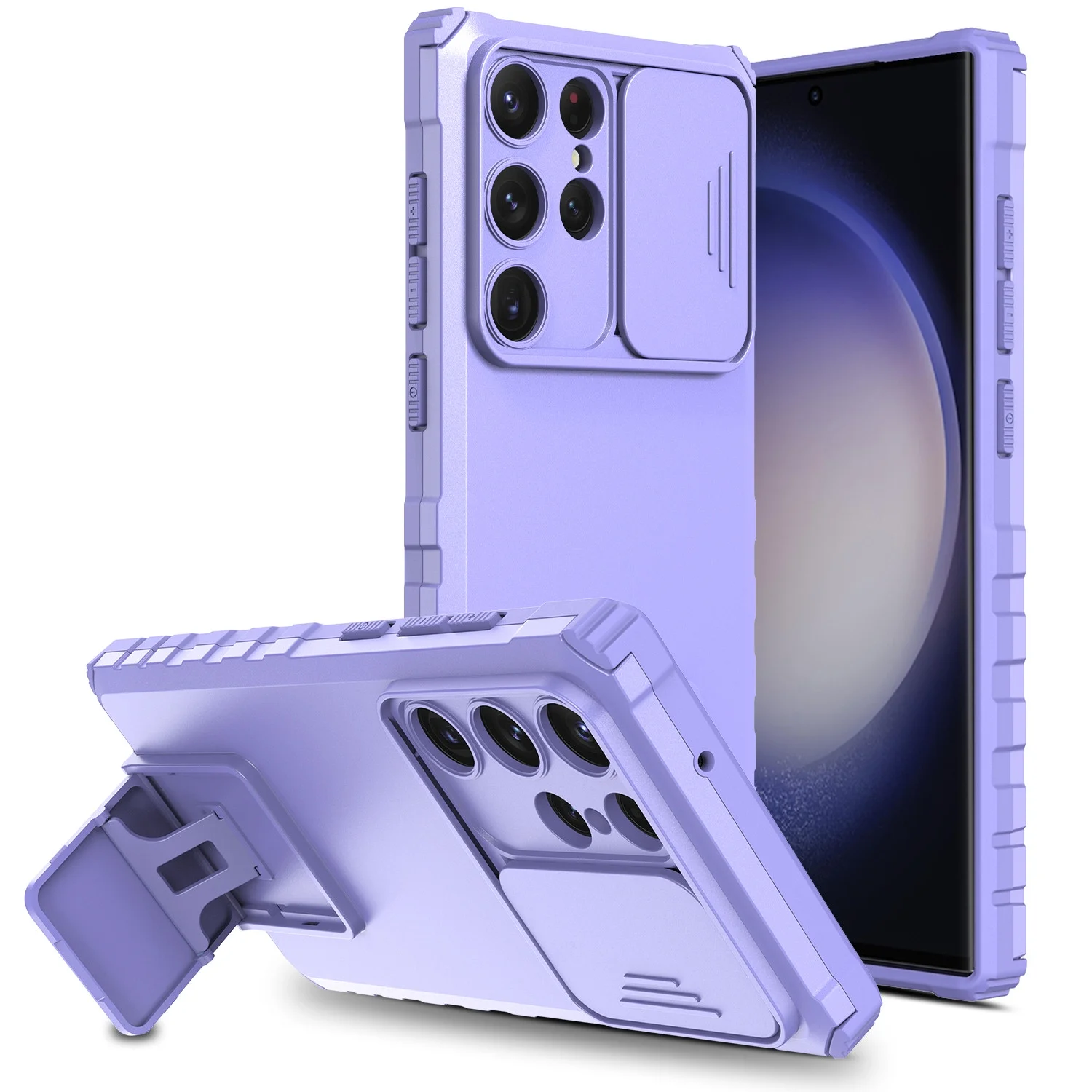 Phone Case with Camera Lens Cover Adjustable Stand for Samsung Galaxy S23 Ultra/S23 Plus/S23, Purle