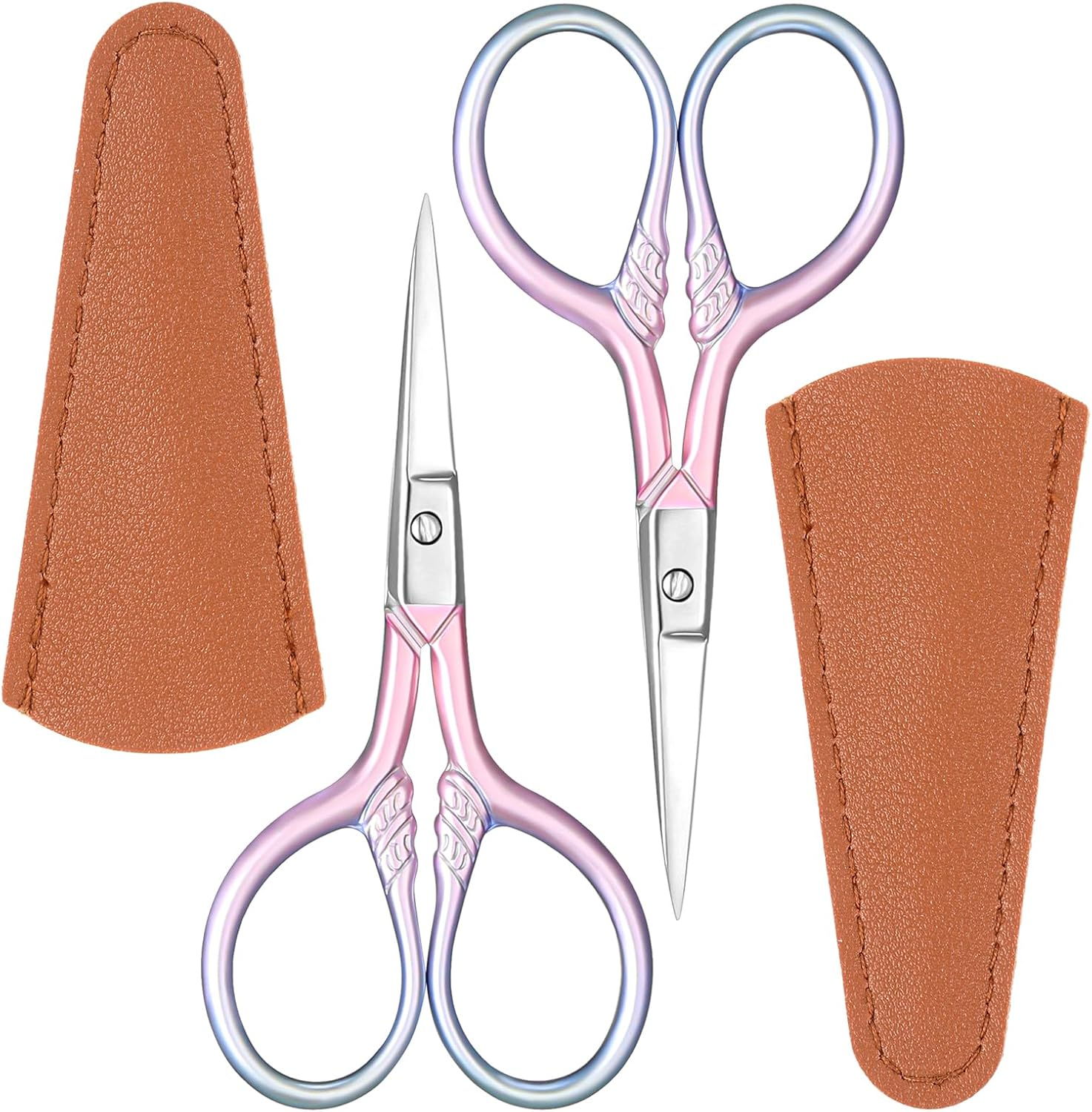 Professional Grooming Scissors for Personal Care 2 Pcs Small Eyebrow Scissors for Women Stainless Steel Facial Hair Grooming Scissors Pink Beauty Scissors for Eyelashes Nose Facial Hair