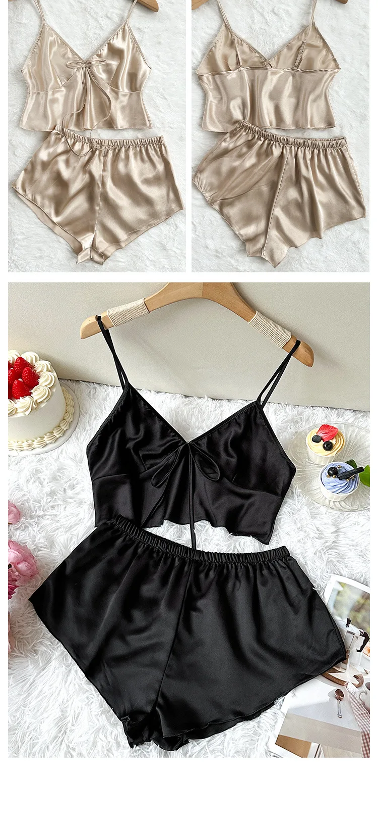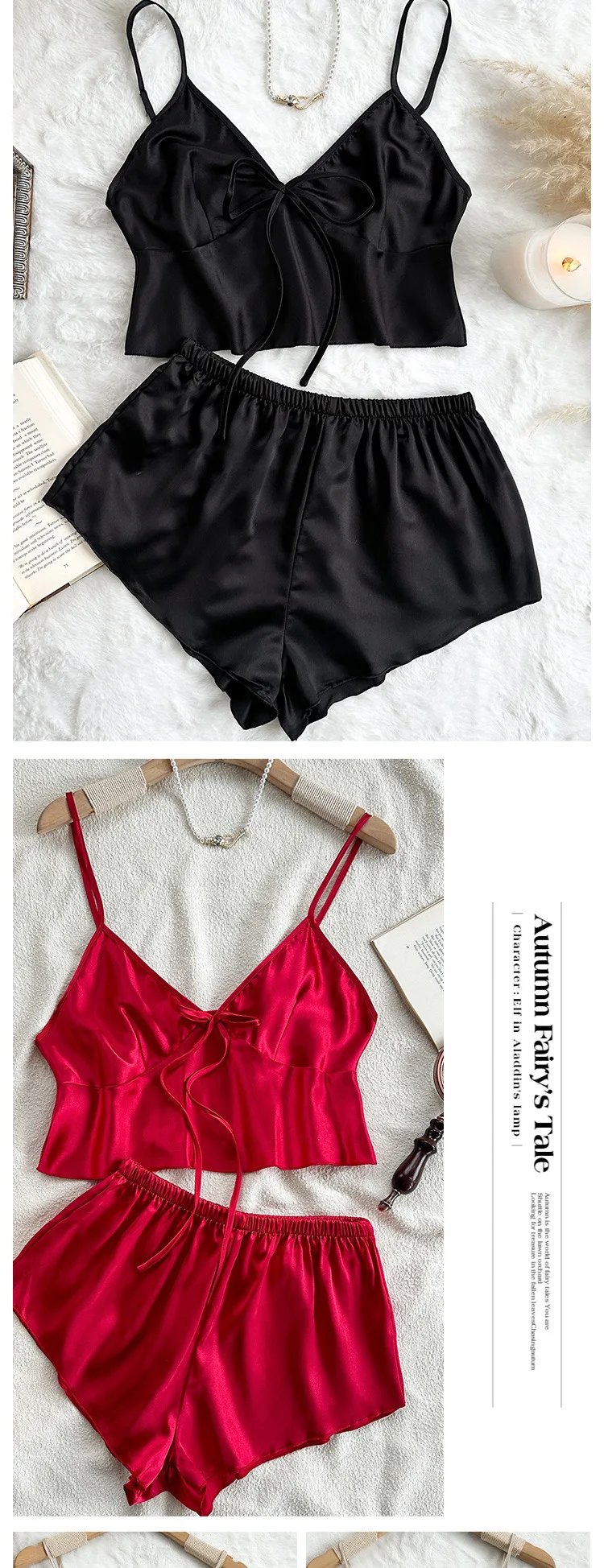 Be the first to review “Red Ice Silk Pijamas Sexy Lingerie Lady Summer Night Wear Mini Strap Top&shorts Solid Color Home Clothing 2Pcs Pyjamas Suit” Cancel reply