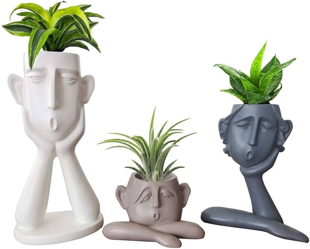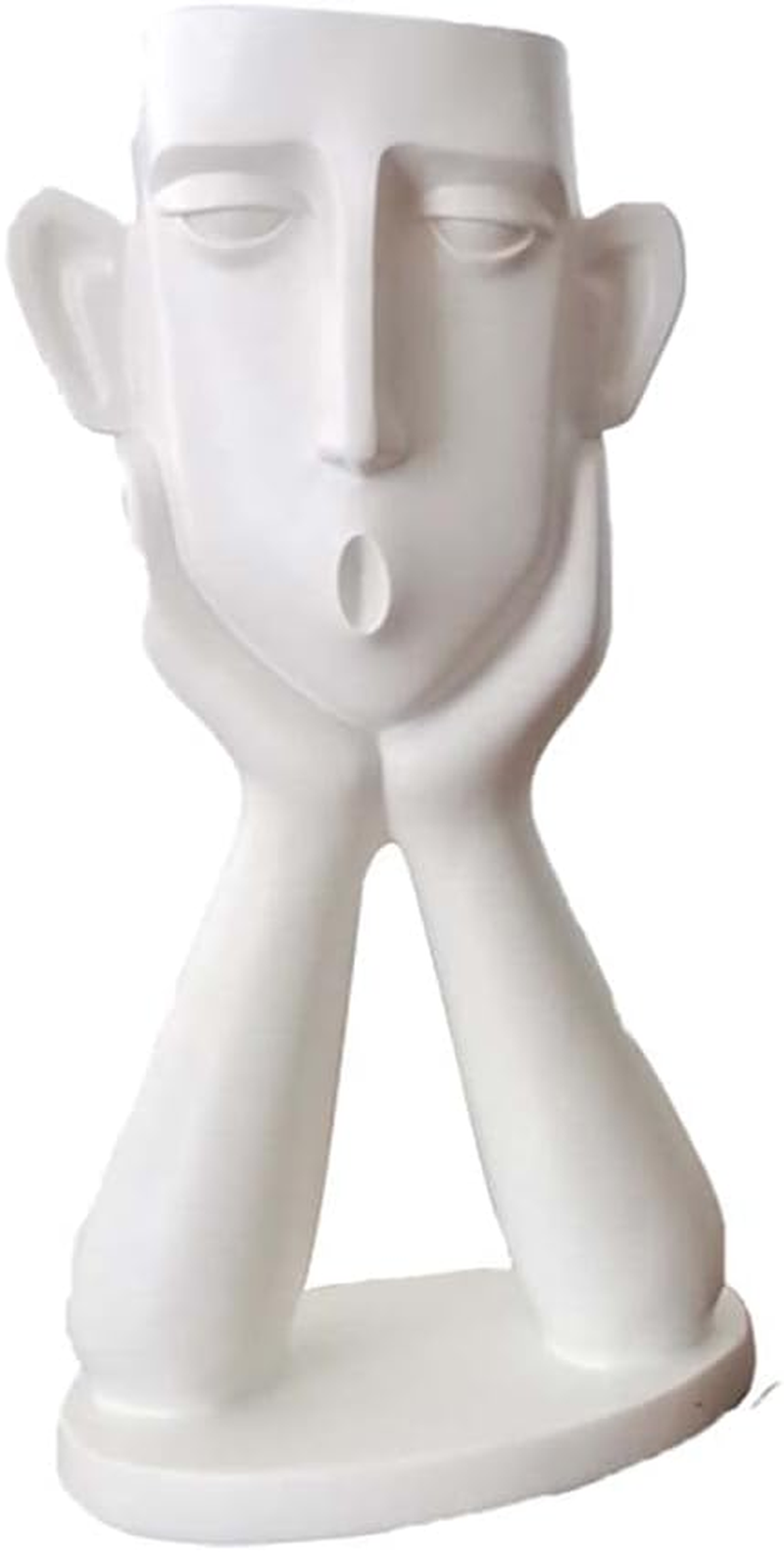 Resin Figure Statue for Home Decoration,Resin Sculpture Statue, Family Human Head Design Succulents Plant Pot,Resin Face Pot for Indoor and Outdoor (Ivory, 10.4Inch Tall)