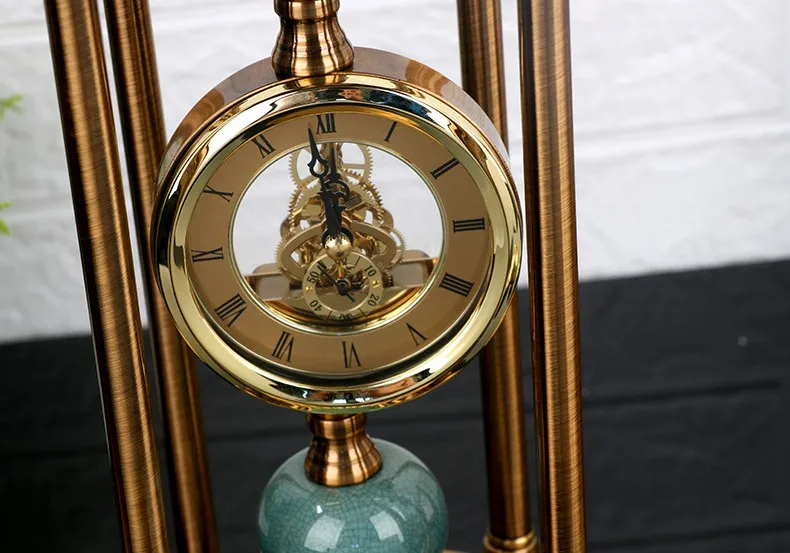 Retro Table Clock Ornaments Desk Alarm Clock Battery Operated Silent Desktop Pendulum Clock Living Room Indoor Home Decoration